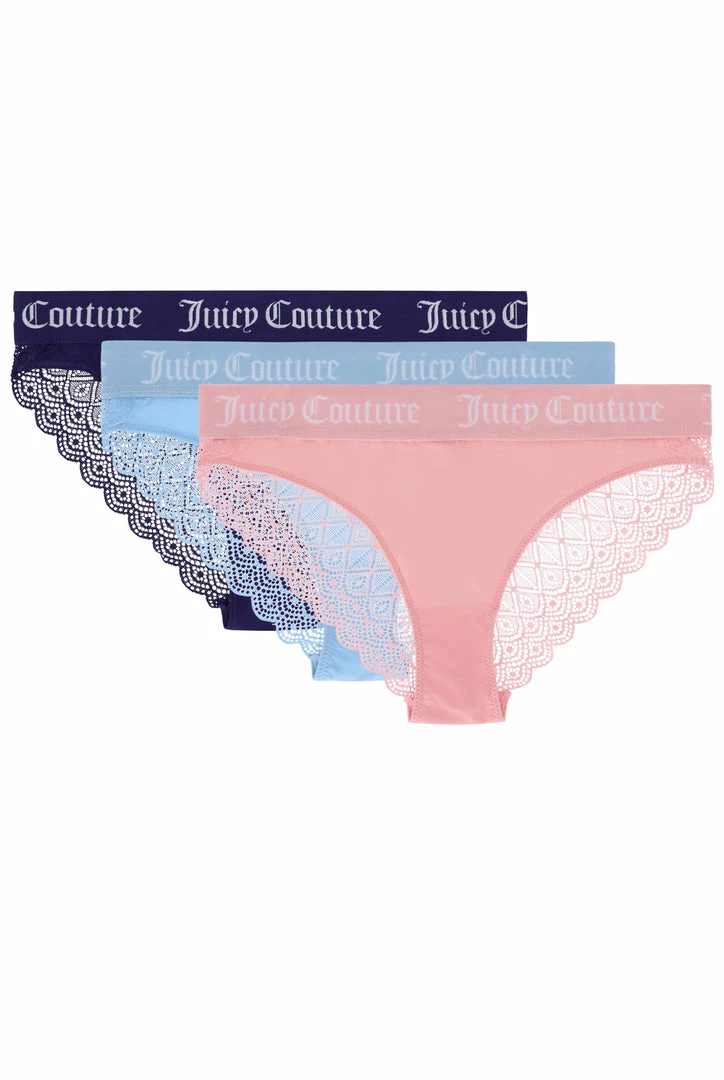 3 pack jersey briefs with lace trim. These briefs feature a jersey base and a sheer lace trim at back and are branded with a jacquard logo at the elastic waistband.