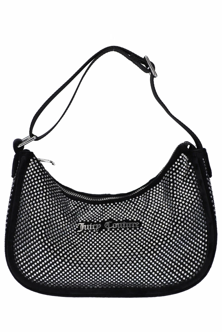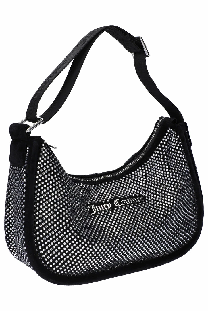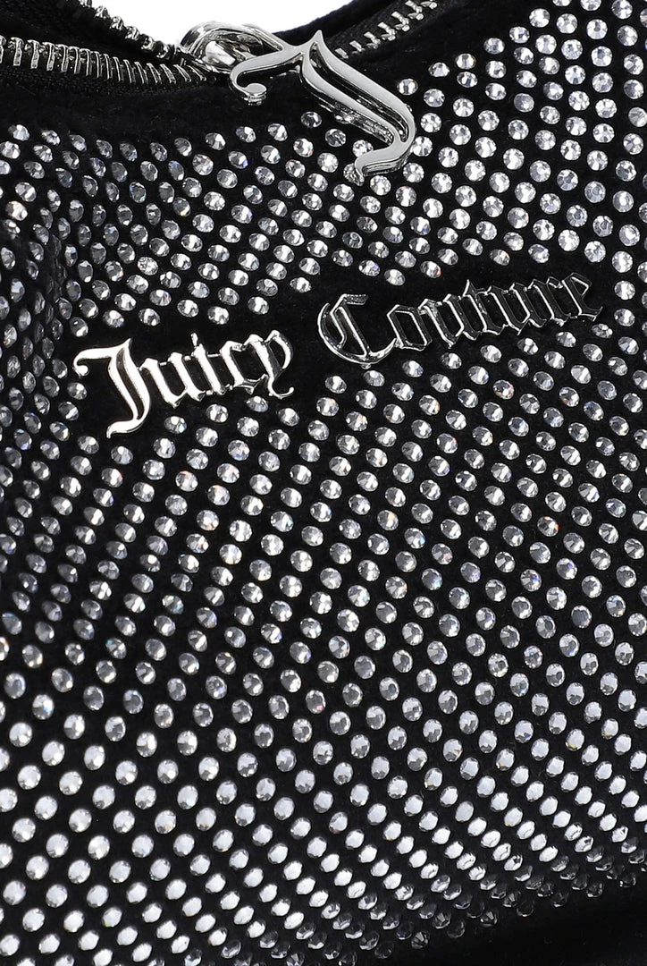 Black all over diamante shoulder bag in classic velour. The bag features Juicy Couture jacquard adjustable straps, gothic J zip and is branded with a metal Juicy Couture logo on front.
