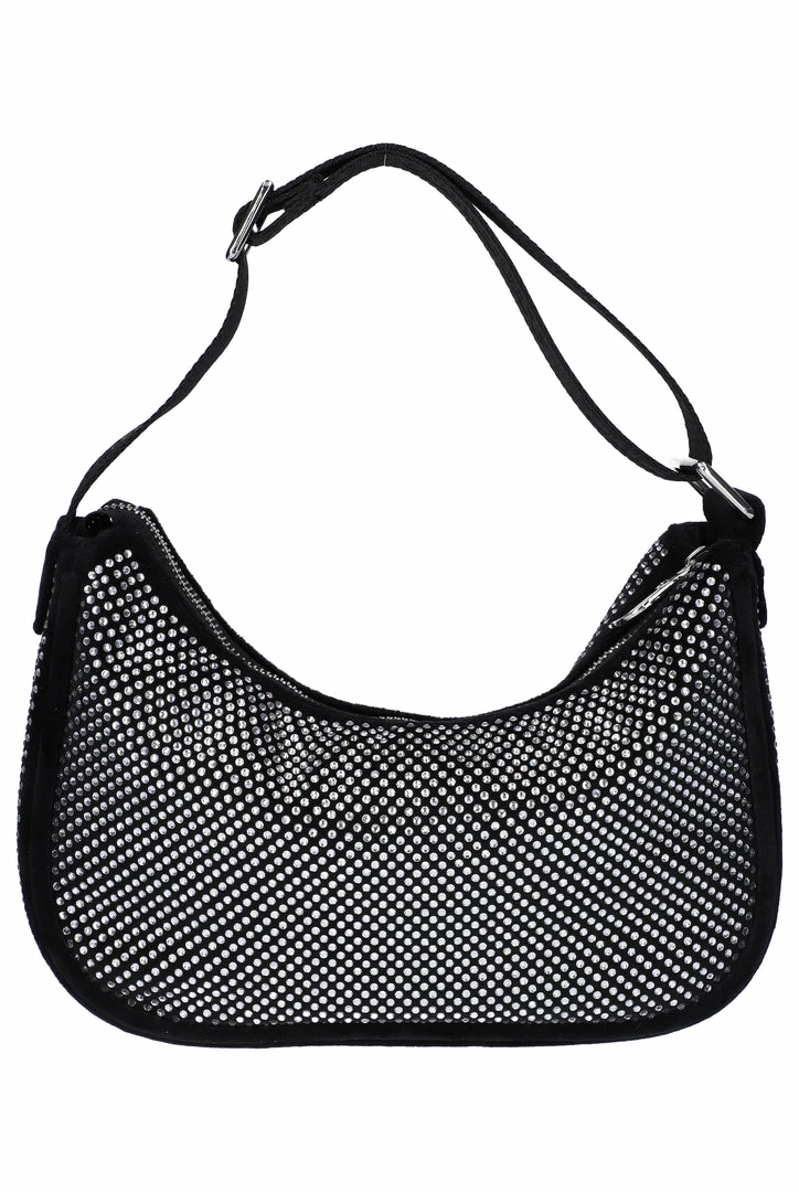 BLACK ALL OVER DIAMANTE VELOUR DIAMANTE SHOULDER BAG