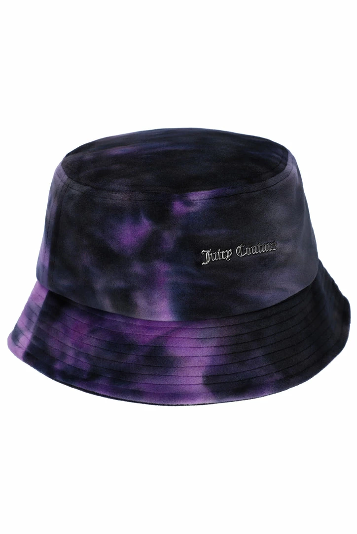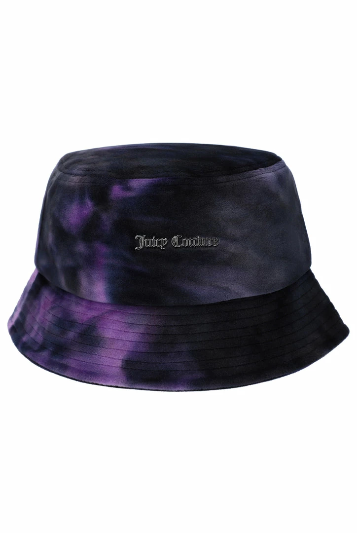 Bucket hat in sparkling grape tie dye classic velour. This hat is branded with a metal ‘Juicy Couture’ on front.