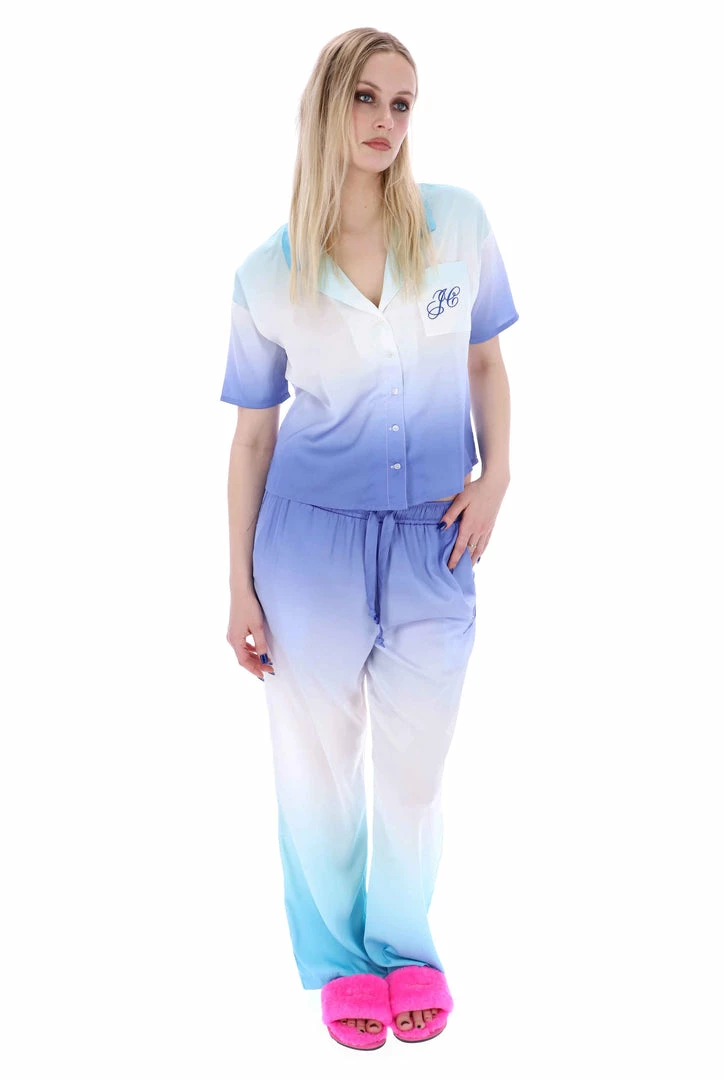 Ombre satin pyjama trousers with script Juicy Couture embroidery. These trousers feature a relaxed straight leg fit, a secure satin tie at the waist and are finished with a JC embroidery branding at the hip. Pair with the matching pyjama shirt for a full luxurious nightwear look.