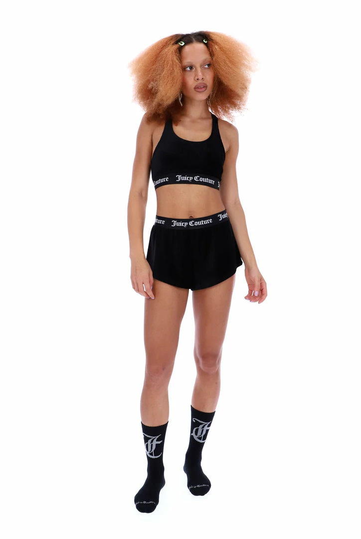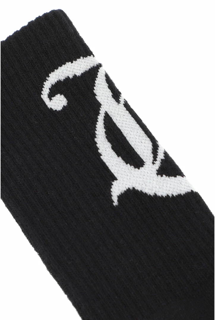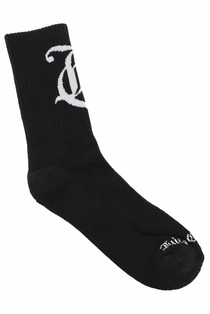 Black calf length socks with rib detailing at calf for a secure fit and signature large Juicy Couture logo on the front. These fashion socks also feature logo branding through the top of foot.