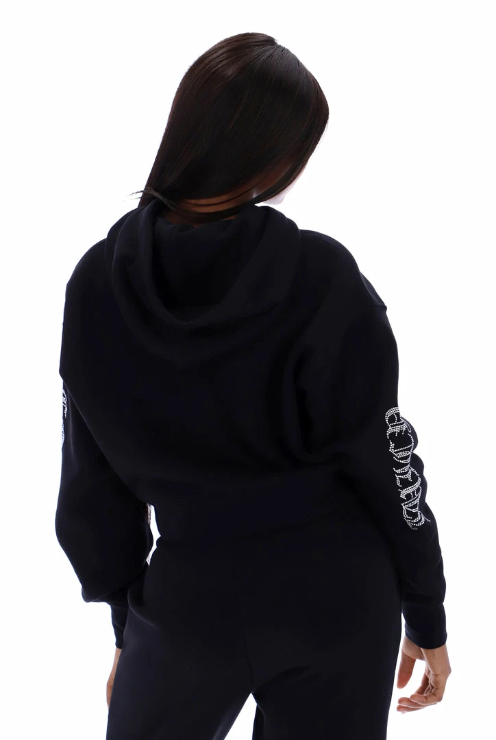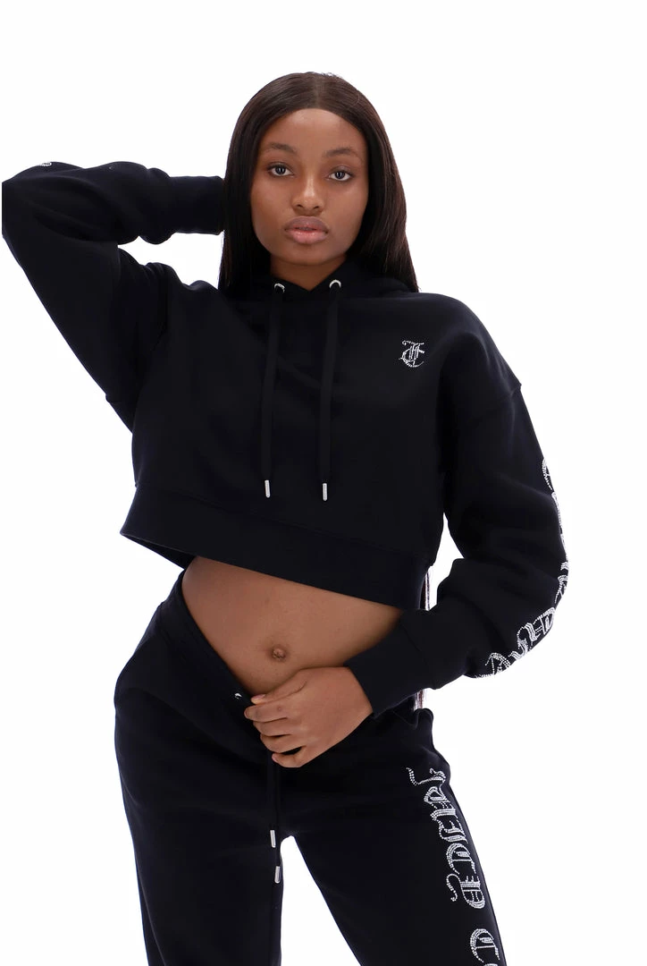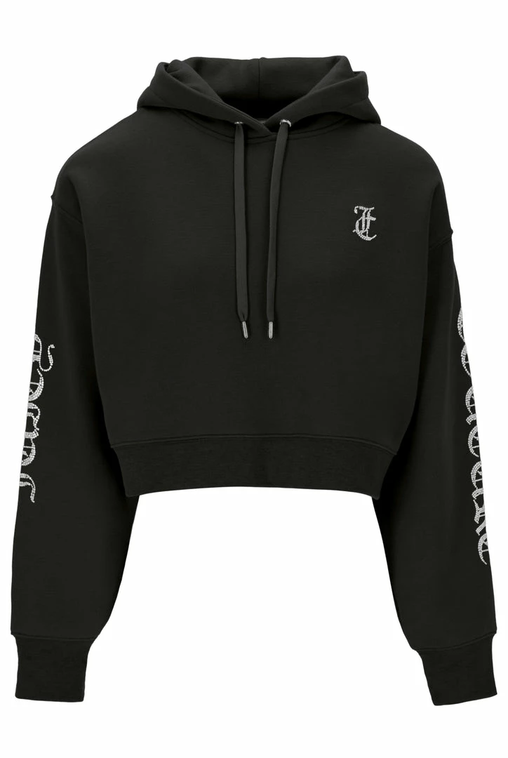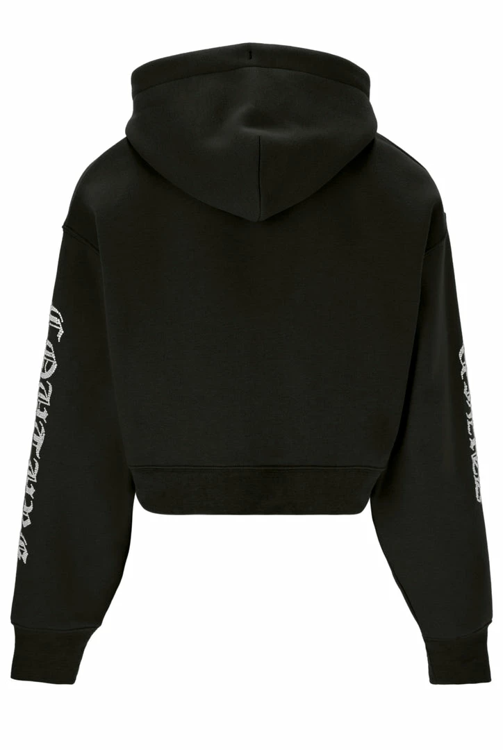 BLACK CAPITAL DIAMANTE CROPPED HOODIE