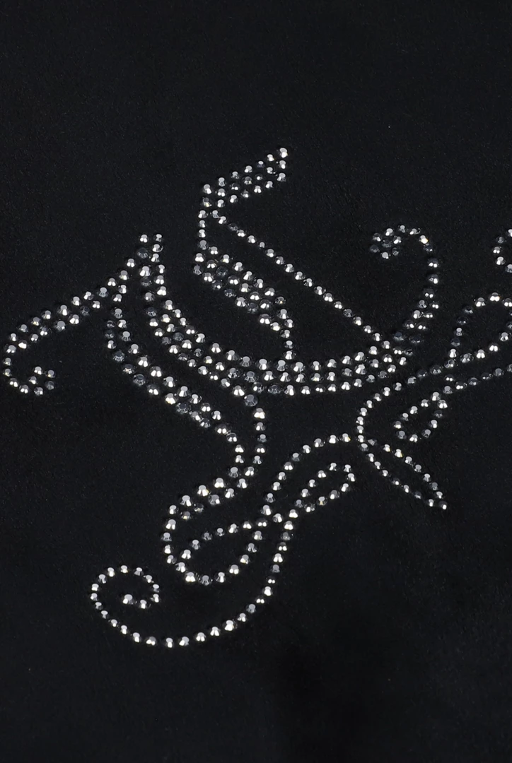 BLACK CREST DIAMANTE VELOUR WIDE LEG JOGGERS