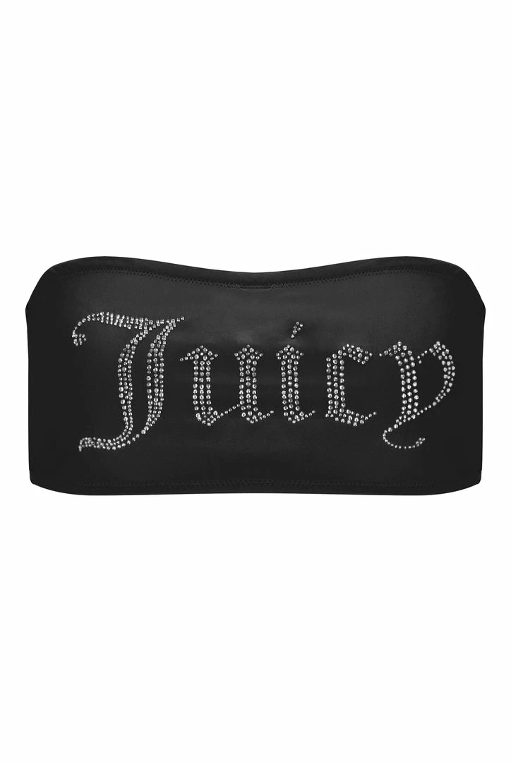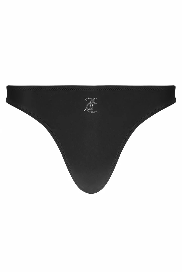 Diamante embellished bandeau swim set in black poly blend. It features a matching top and bottoms that are signed off with ‘Juicy’ and ‘JC’ branding in the signature diamante finish. The bandeau top is elasticated through top edge for a secure fit, perfect for when you’re chillin’ or swimmin’.