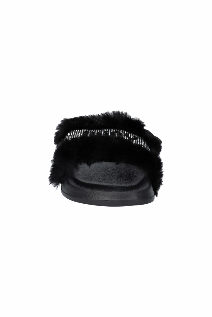 BLACK FAUX FUR DIAMANTE SLIDERS
