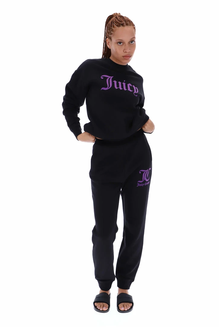 BLACK FLOCKED BOYFRIEND CUFFED JOGGER