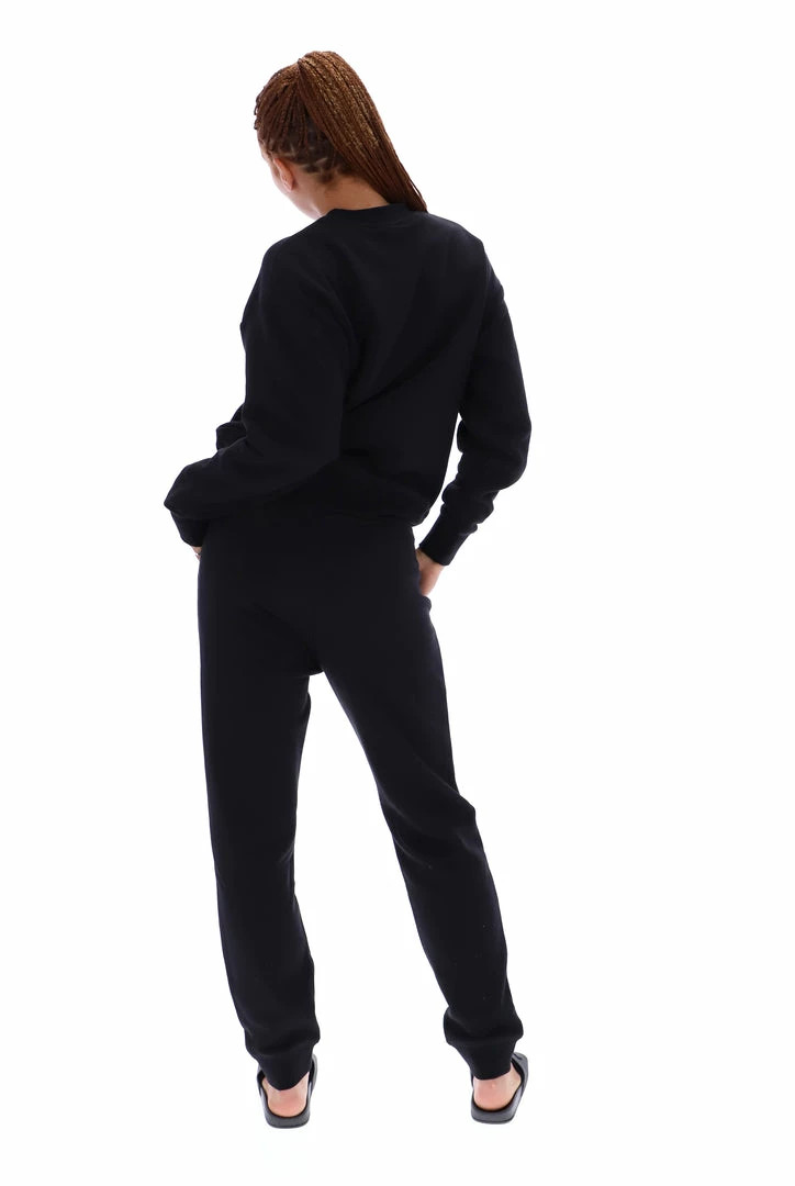 Ribbed cuff boyfriend joggers in black soft brushed back fleece. These joggers feature a flocked elastic waistband and is branded with large JC artwork on left leg. Pair with the matching hoodie for a relaxed fit tracksuit.