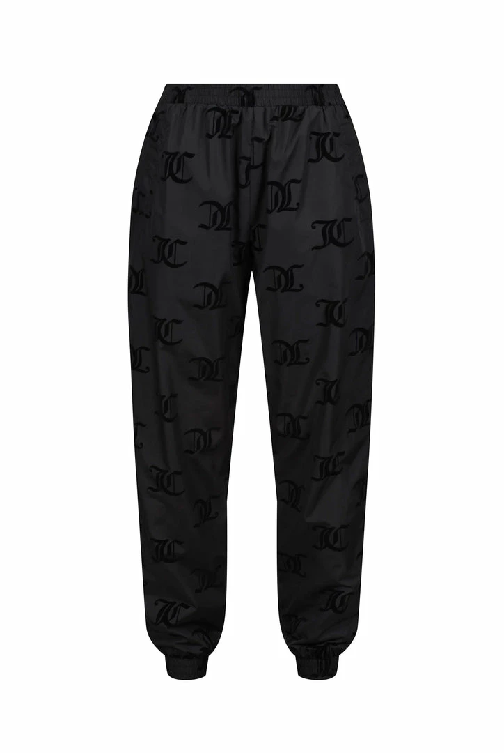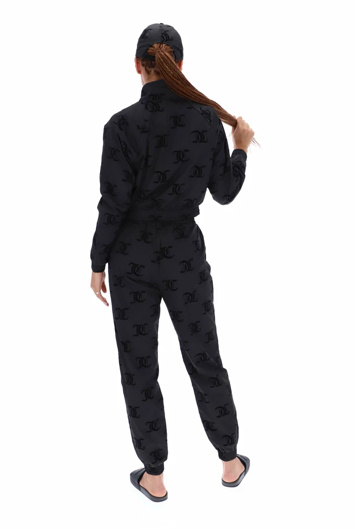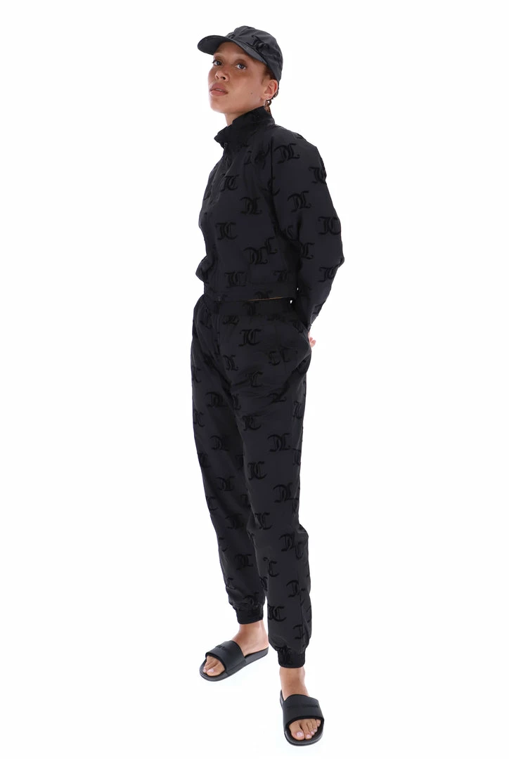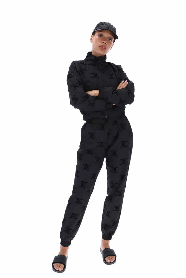 BLACK FLOCKED MONOGRAM PONGEE TRACK JOGGER