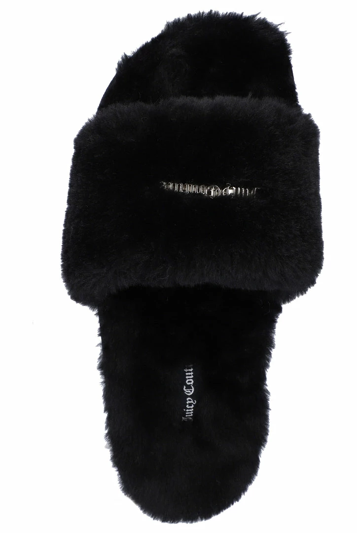 BLACK FUR FLAT SLIDES