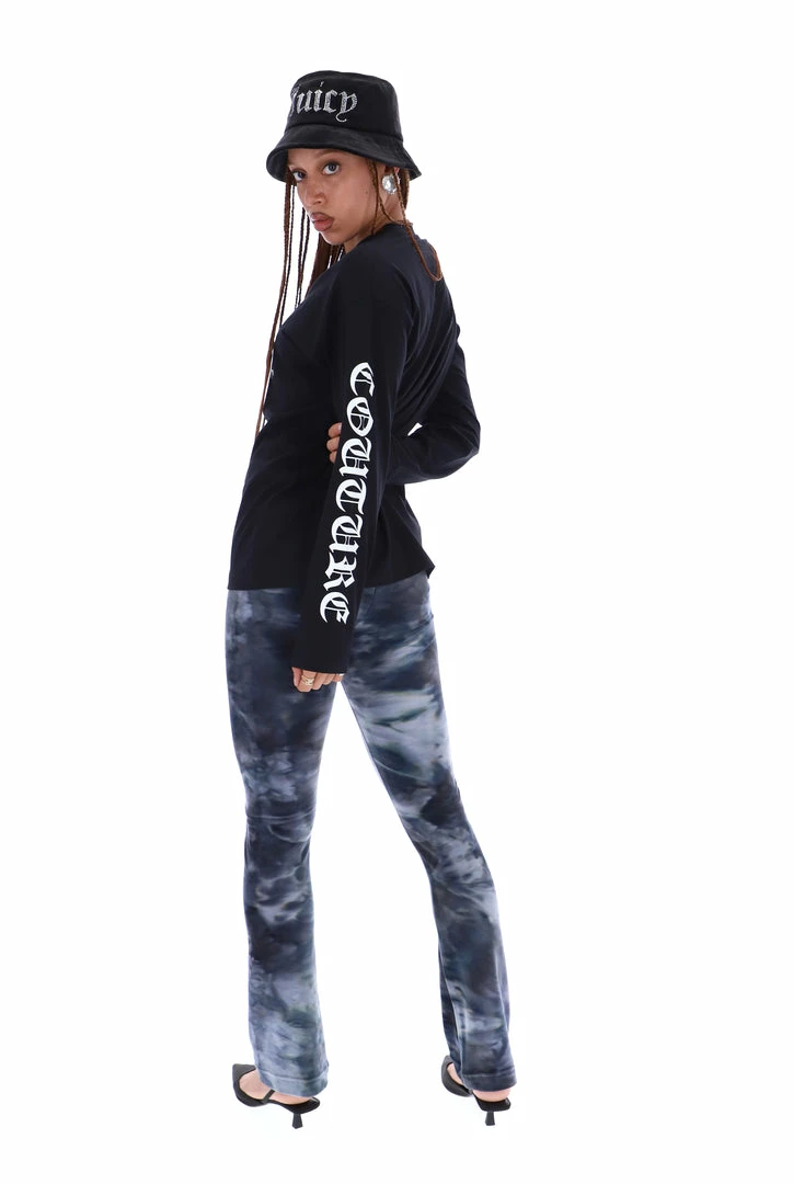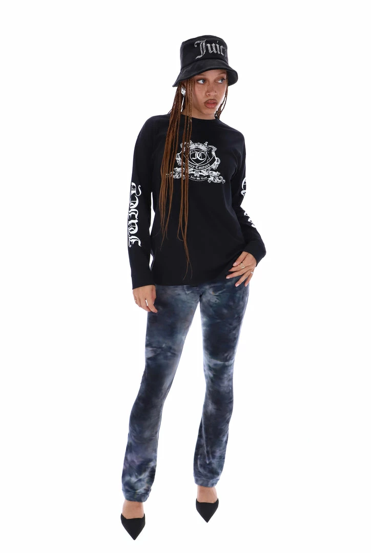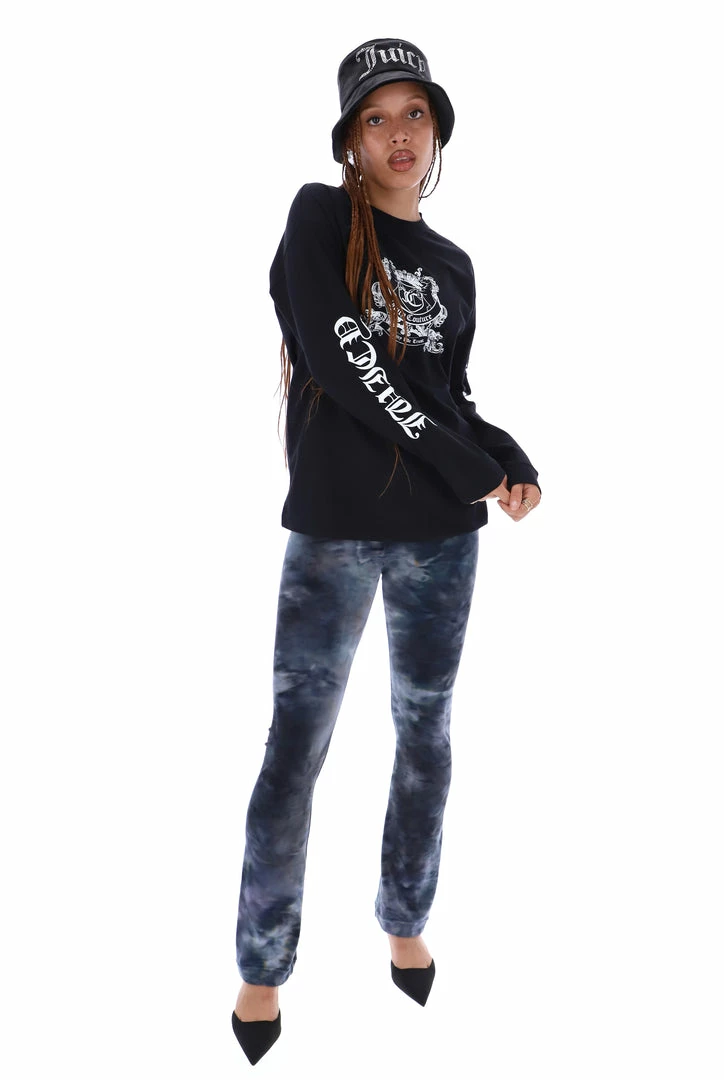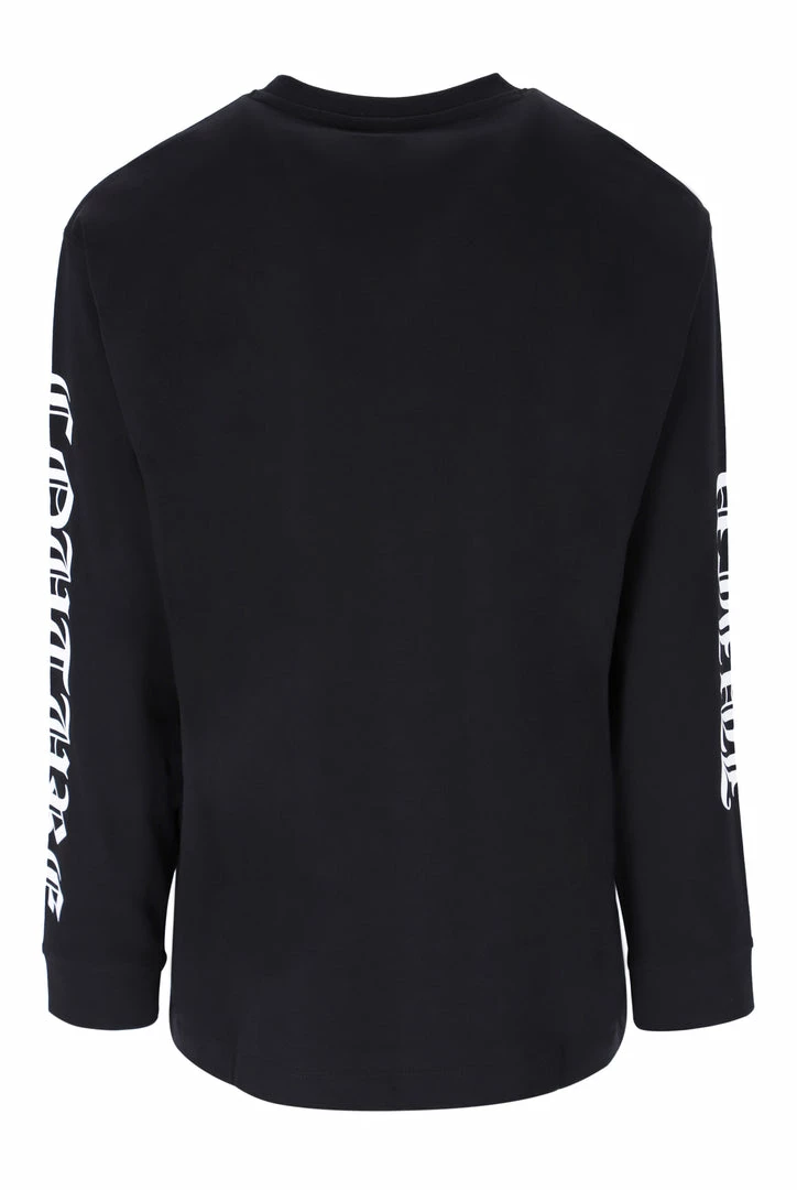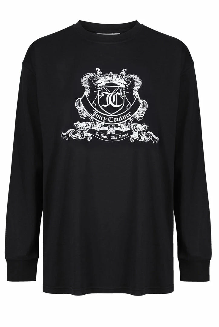 Long sleeve oversized t-shirt in black cotton. This boyfriend fit tee is cuffed at the sleeve, featuring drop shoulders and is branded with a printed heraldic rodeo crest graphic on front.