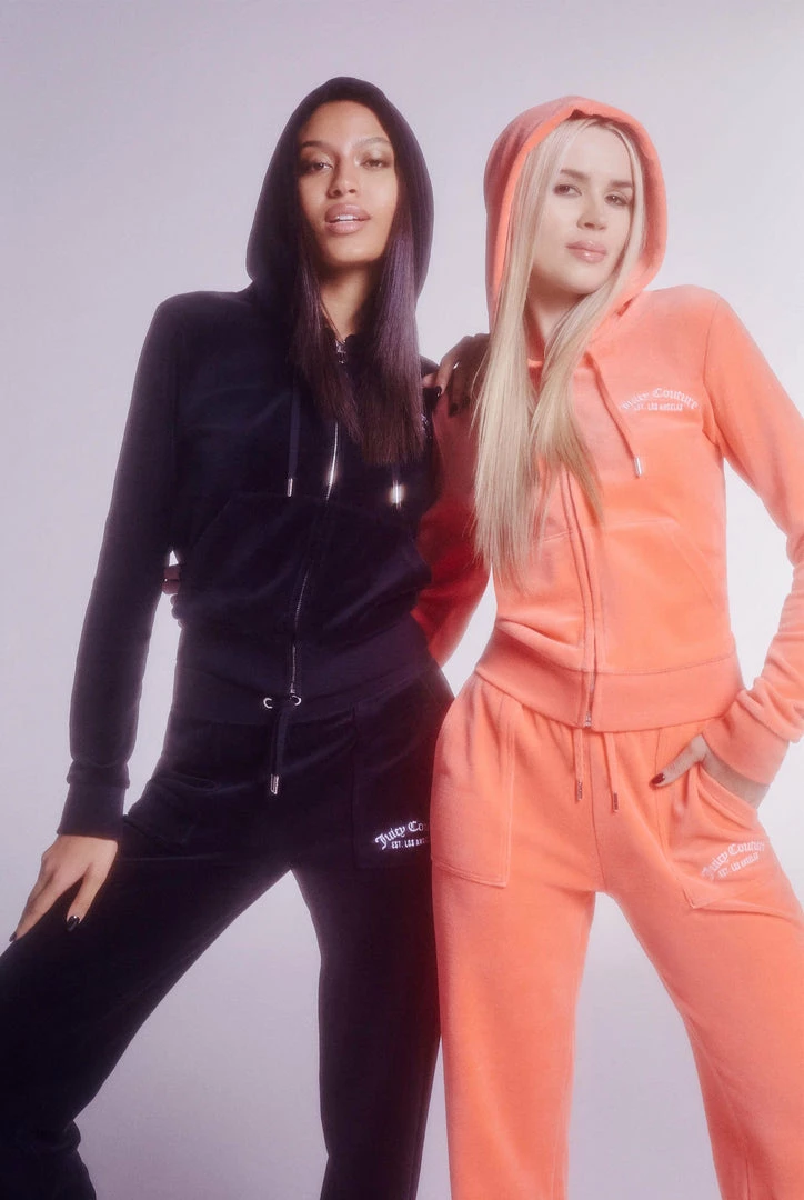 Mid-rise tracksuit bottoms in black recycled cotton rich velour. Offering an iconic JC tracksuit in a premium mindful design, fully sustainable from production to fabrication, hardware and trims. Straight leg fit with adjustable drawstring ribbed waist and front feature pockets. These signature joggers feature back popper fastening pockets, branded silver hardware and are finished with a tonal embroidered JC logo at hip. Pair with the matching zip up hoodie to complete this conscious tracksuit look.
