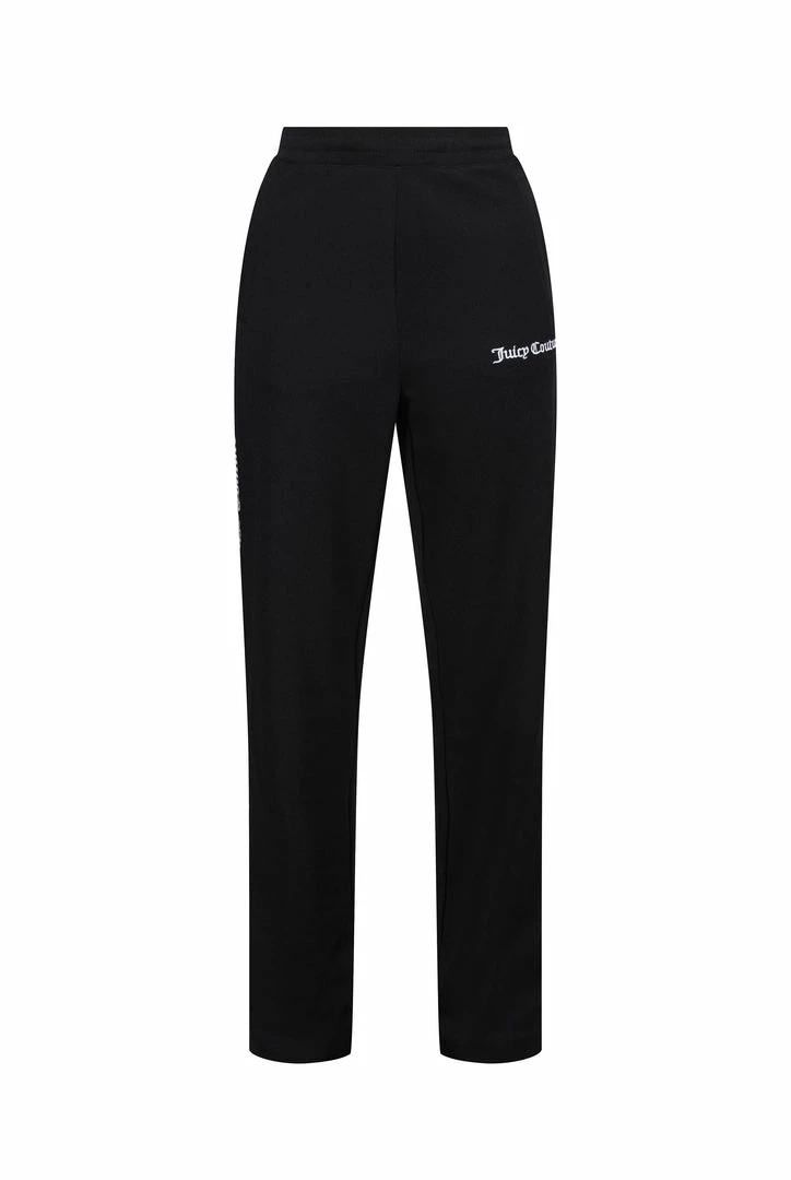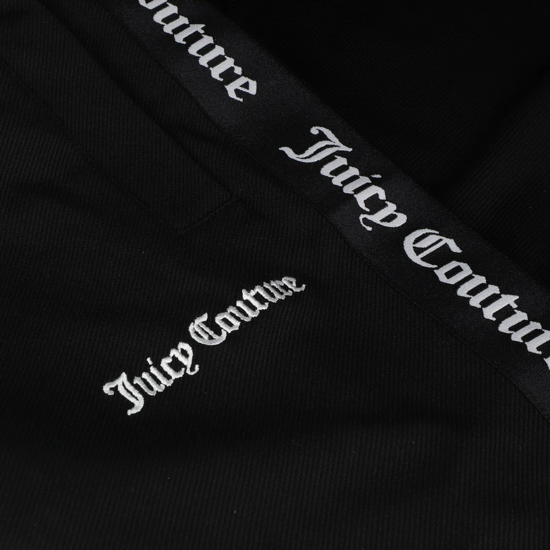 Mid-rise track pants in black twill tricot jersey. These bottoms are branded with a jacquard elastic ‘Juicy Couture’ tape through leg. Featuring internal draw cords, side pockets and embroidered logo at hip.