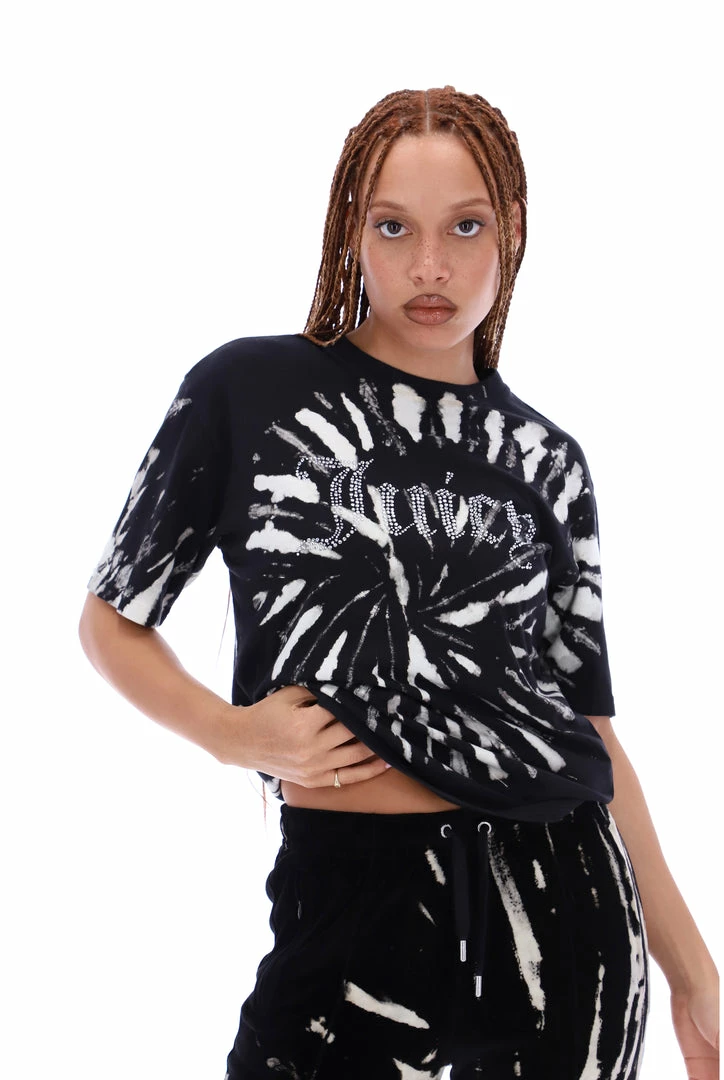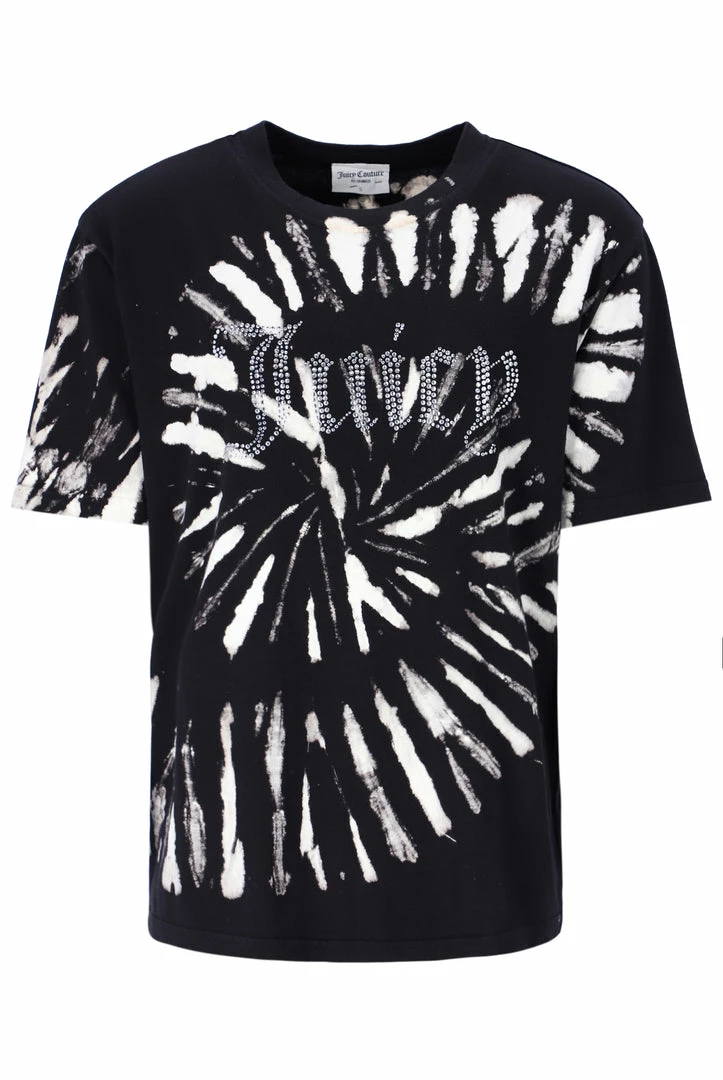 Unisex fit black tie dye t-shirt. A short-sleeved crew neck style with a diamante Juicy logo through chest.