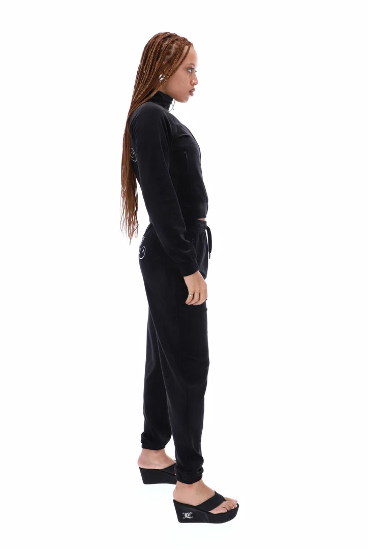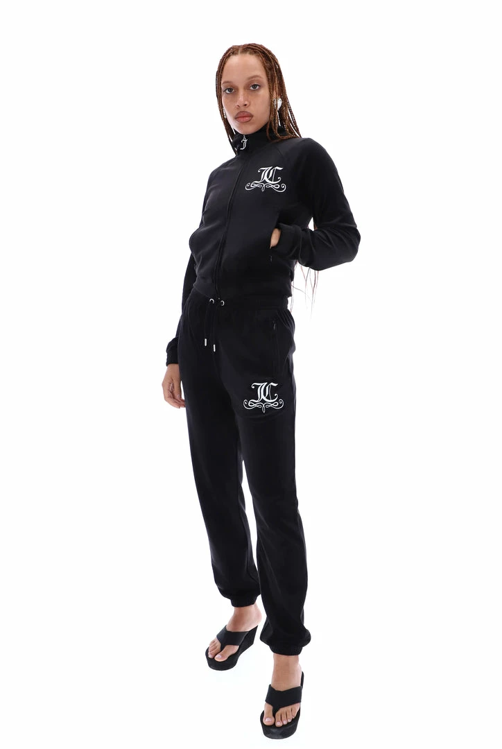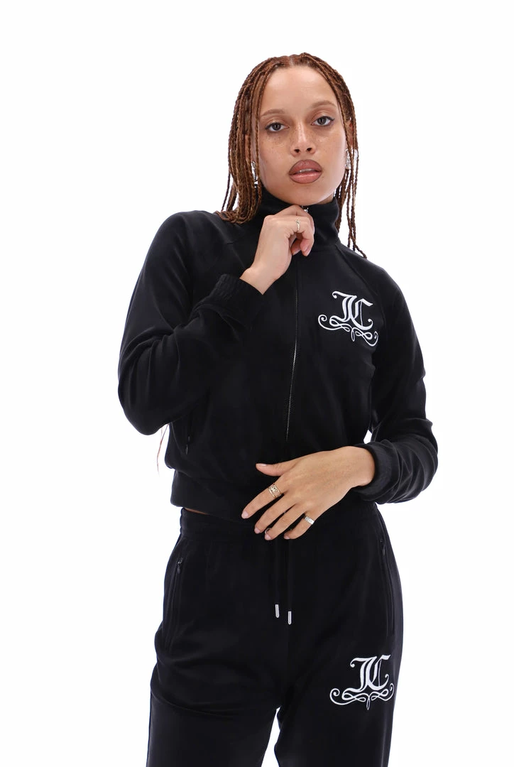 BLACK VELOUR CREST EMBROIDERED TRACK TOP