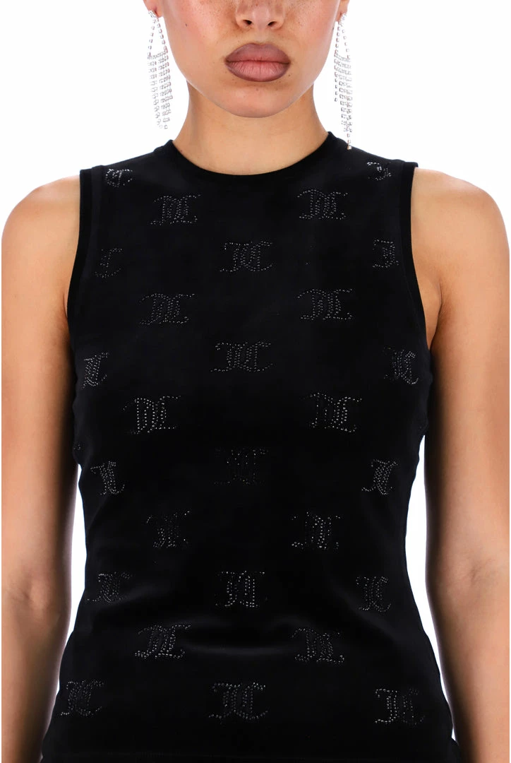 BLACK VELOUR MONOGRAM DIAMANTE EMBELLISHED TANK