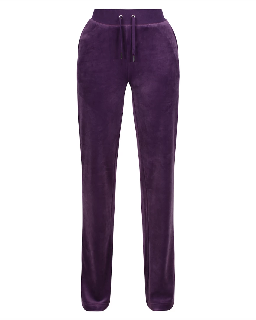 Mid-rise plain tracksuit bottoms in blackberry cordial classic velour. Flared leg fit, with adjustable drawstring ribbed waist and front feature patch pockets. These Black Label joggers feature back popper fastening pockets, silver branded hardware and are finished with a tonal embroidered JC logo at the hip. Pair with the Robertson hoodie for the full iconic tracksuit staple.