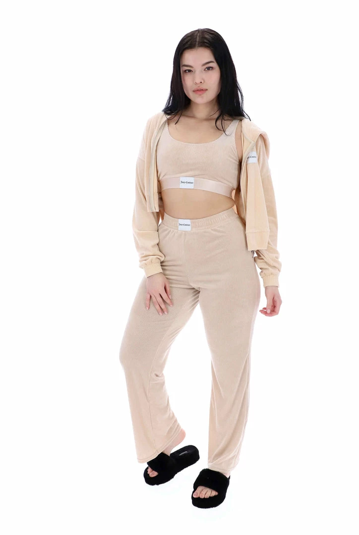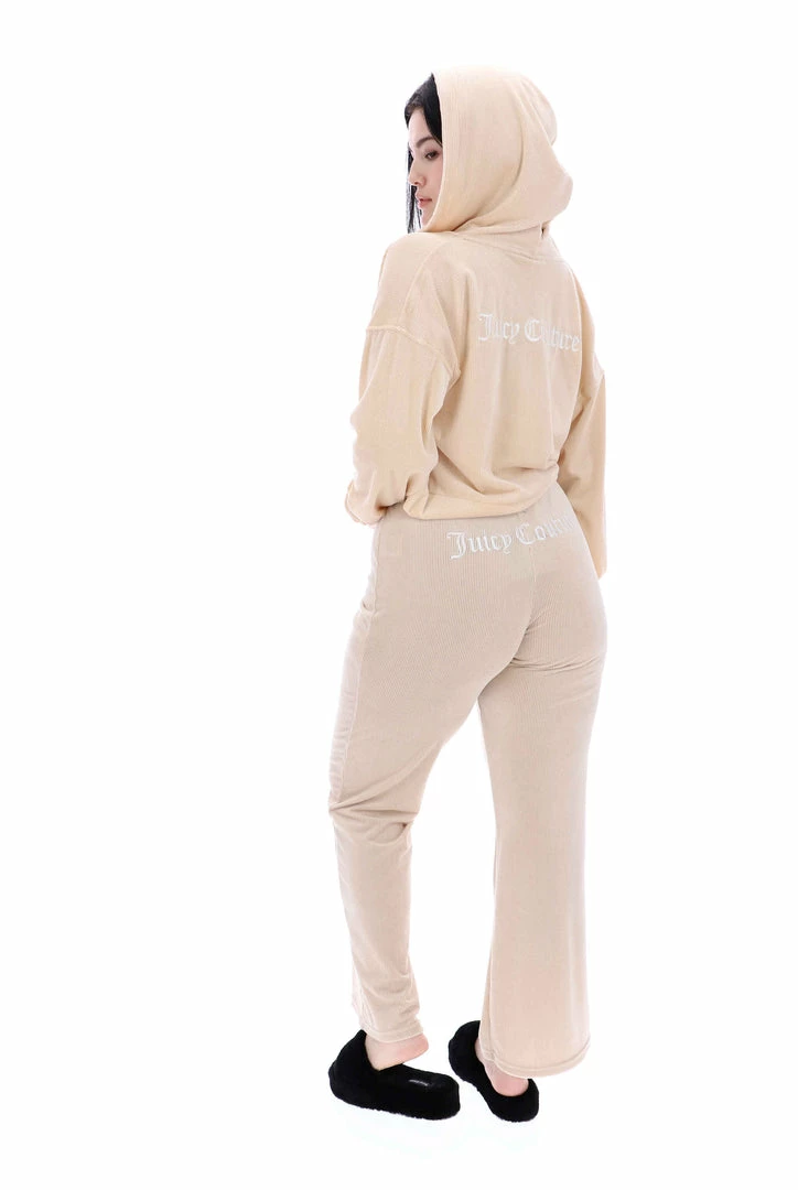 Flare pant in brazillian sand velour. These relaxed fit pants feature an elastic waist with a ‘Juicy Couture’ patch branding. Pair with the matching zip hoodie for a luxe lounge look.