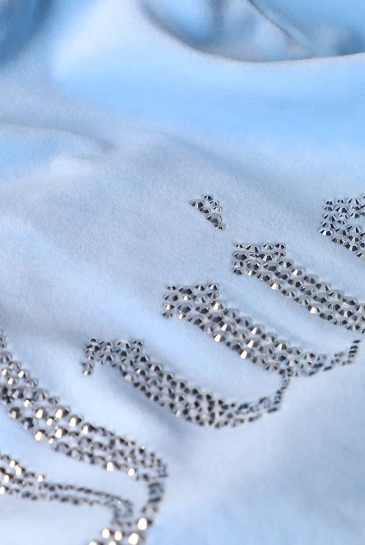 COOL BLUE VELOUR DIAMANTE HOODIE