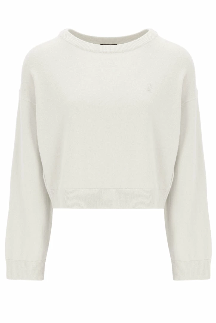 Knitted crew neck in cream cashmere blend. Boxy fit, this premium jumper is branded with a tonal embroidered JC logo at the chest