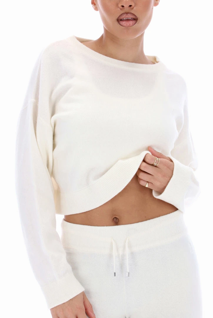 Β CREAM CASHMERE BLEND KNITTED CREW