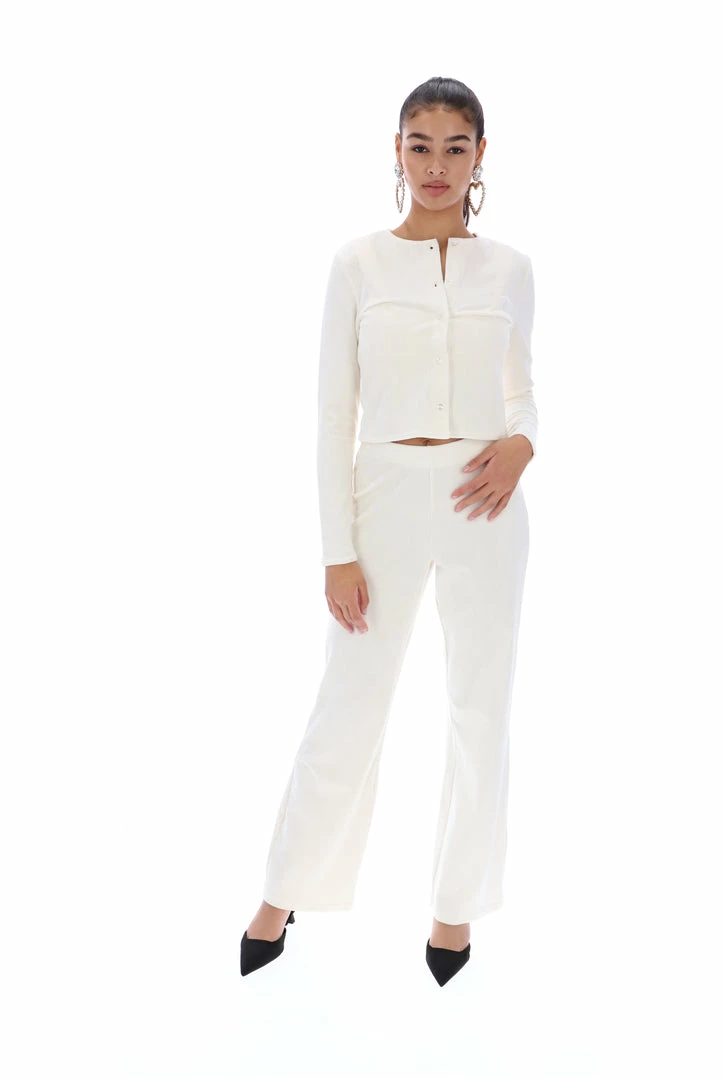 CREAM RIB VELOUR WIDE LEG BOTTOMS
