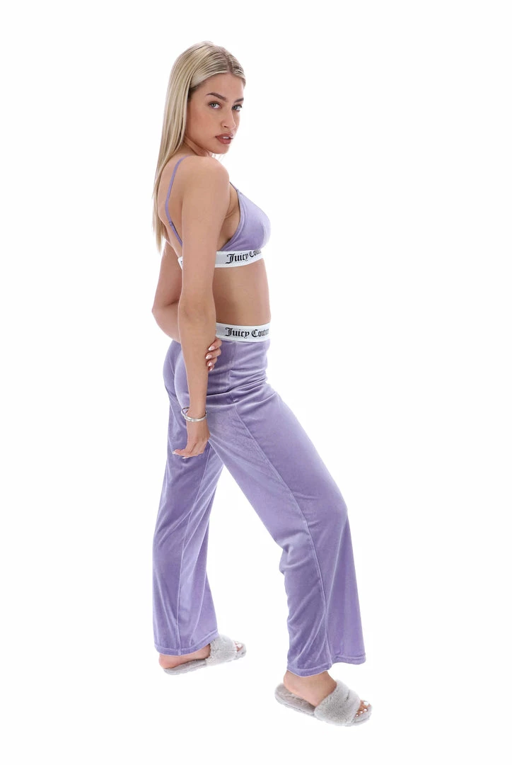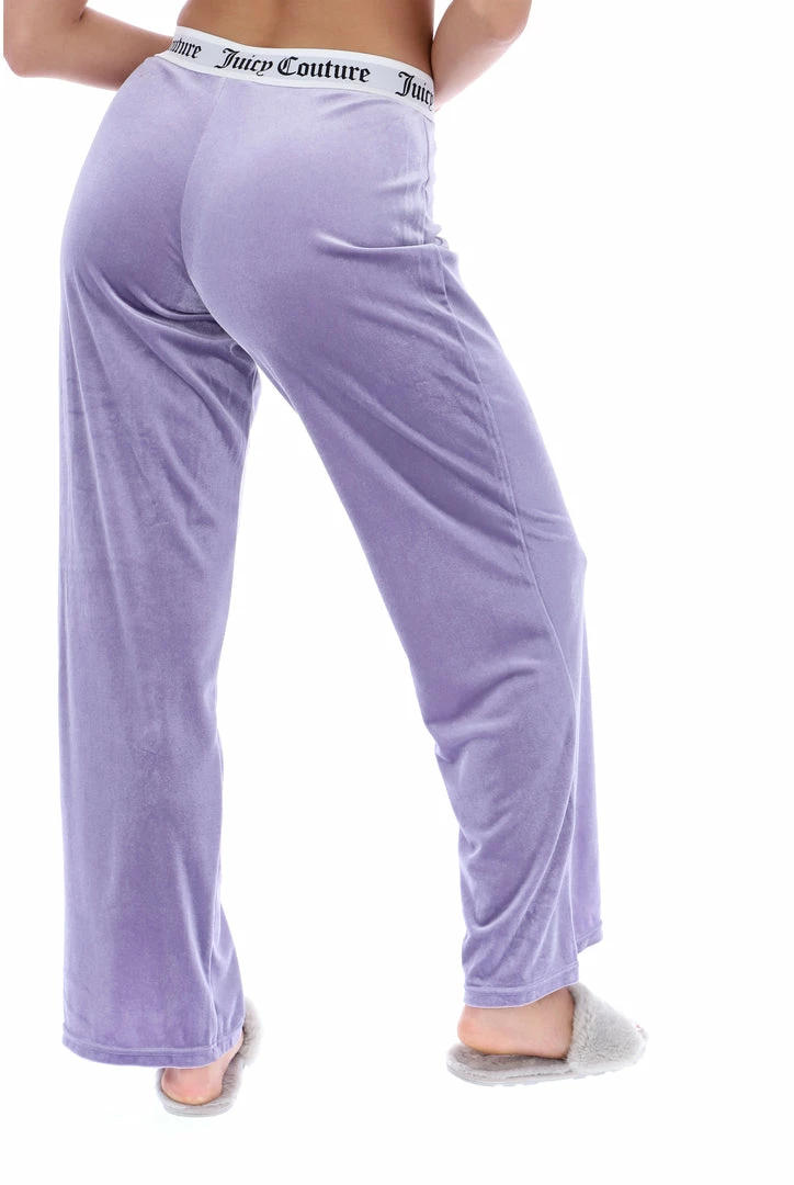 Wide leg bottoms in daybreak velvet. These bottoms feature a relaxed fit and are branded with a soft jacquard elasticated waistband. Pair with the matching tops for a relaxed loungewear look.