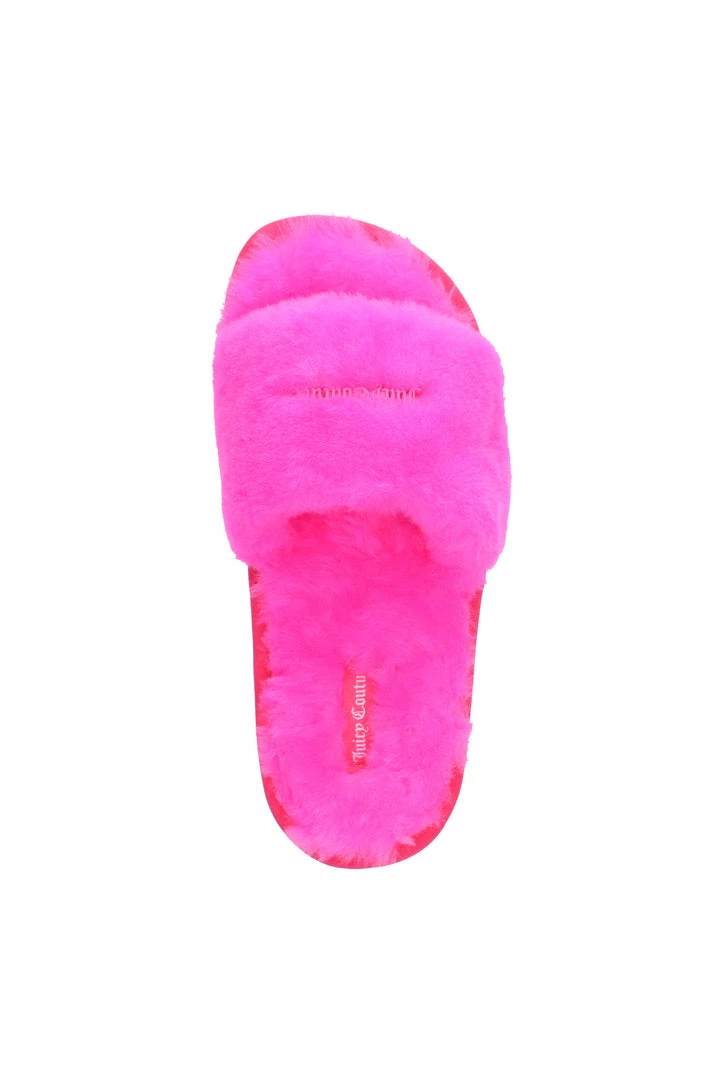 FLURO PINK FUR FLAT SLIPPERS