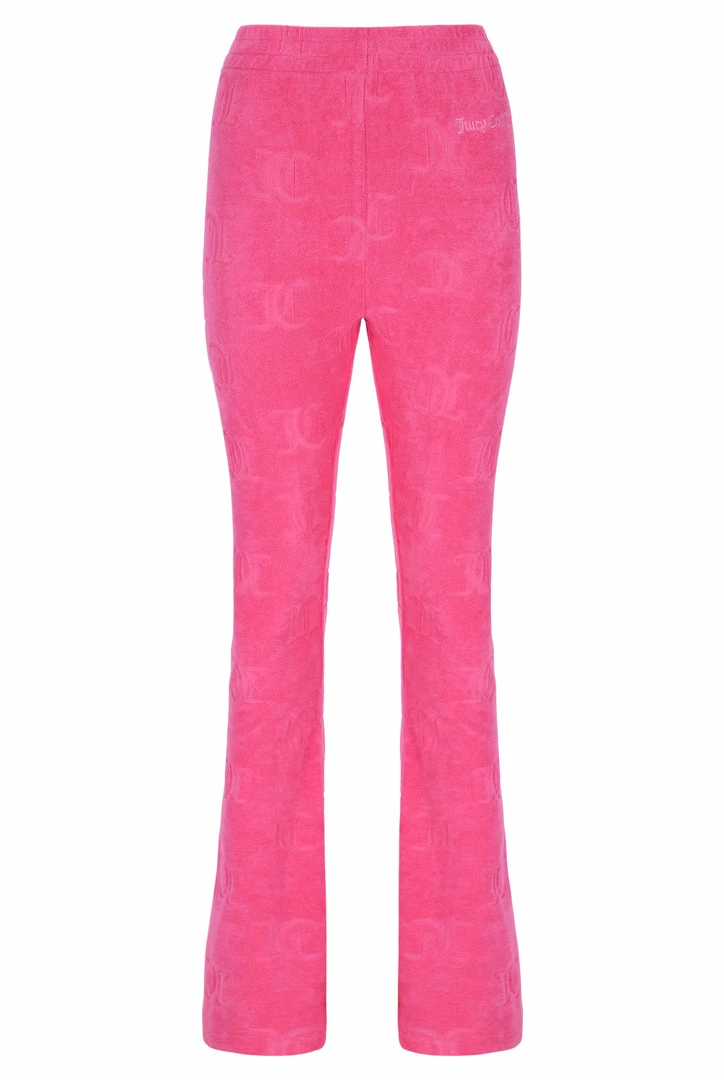 Monogram jacquard track pant in fluro pink recycled terry towelling. These mid rise straight leg trousers feature an elastic waist band tonal ‘Juicy Couture’ logo at left hip. Branded with an all over monogram ‘JC’ logo. Pair with the matching zip-through track top to complete the look. RECYCLED TERRY TOWELLING- A breathable cotton fabrication to update your staple tracksuit for the summer months.