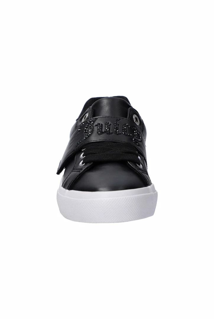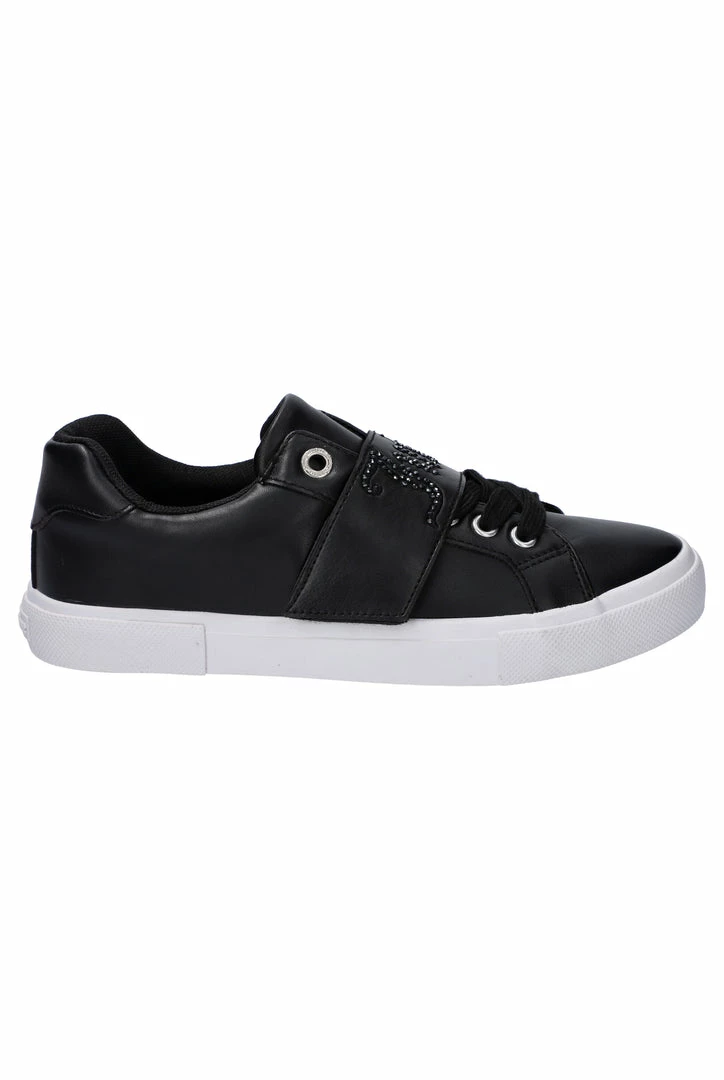 This PU trainer in black features laces and a velcro strap for multiple fastening.