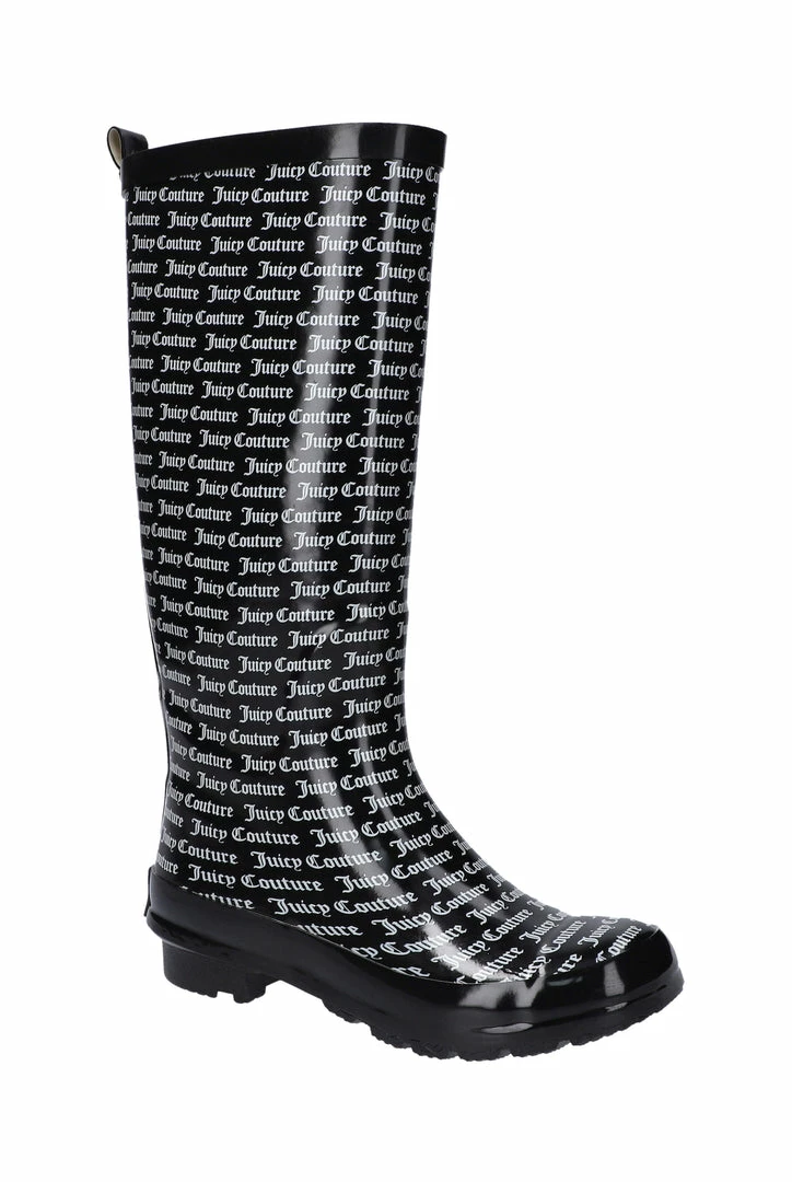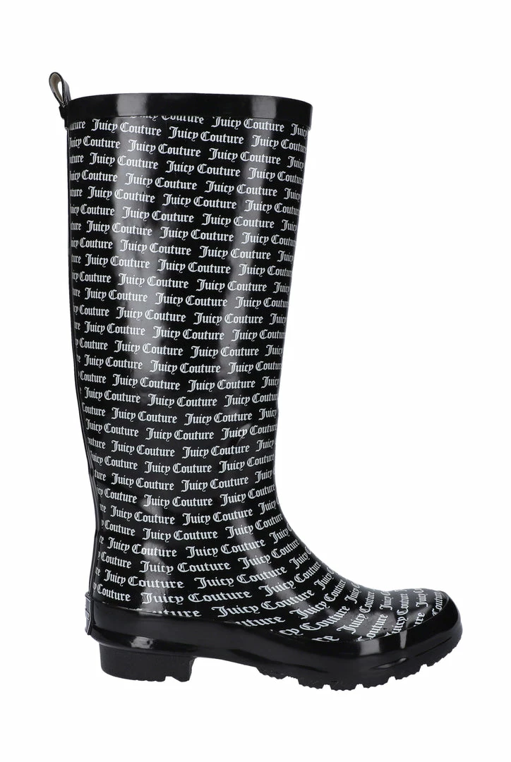 Rainproof black wellington boots with Juicy Couture branding. These boots feature a soft cotton lining for comfort.