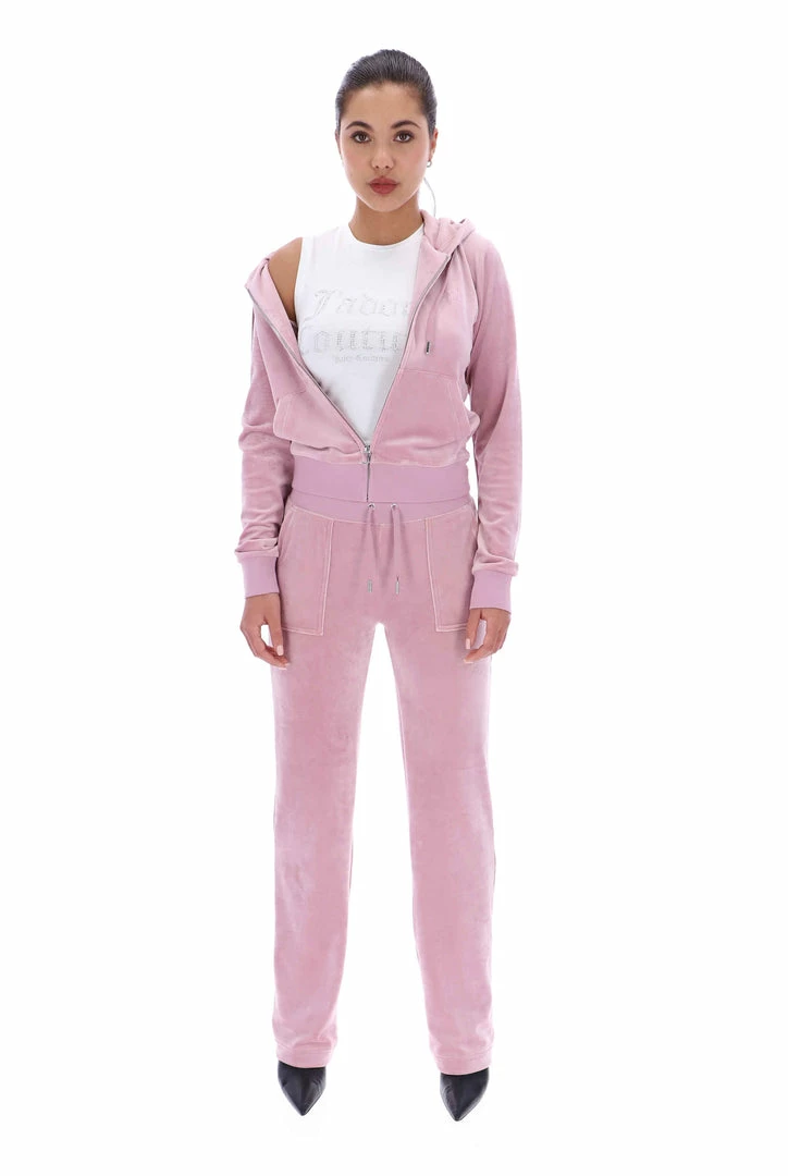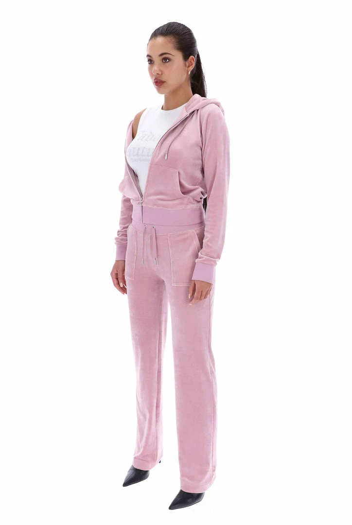 Mid-rise plain tracksuit bottoms in keepsake lilac classic velour. Flared leg fit, with adjustable drawstring ribbed waist and front feature patch pockets. These Black Label joggers feature back popper fastening pockets, silver branded hardware and are finished with a tonal embroidered JC logo at the hip. Pair with the Robertson hoodie for the full iconic tracksuit staple.