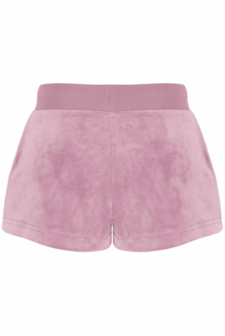 Mid-rise plain shorts in keepsake lilac classic velour. A short flirty fit, with adjustable drawstring ribbed waist and front angled pockets. These iconic core track shorts are branded with silver hardware and a tonal embroidered JC logo at the hip.