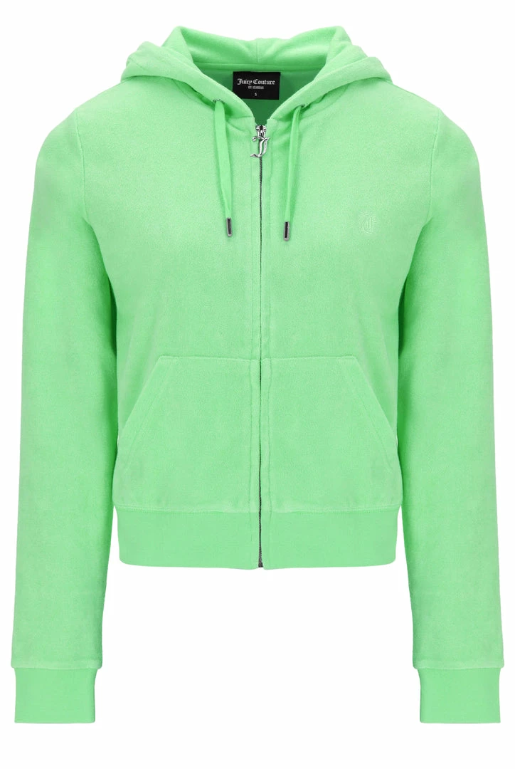Our iconic zip through hoodie in mint terry towelling. Slim fit, with kangaroo pockets and a self- fabric lined hood, this iconic core hoodie features a statement gothic J zip pull and is branded with a tonal embroidered JC logo at the chest. TERRY TOWELLING- A breathable cotton fabrication to update your staple tracksuit for the summer months. Pair with the matching terry bottoms for a poolside track fit.