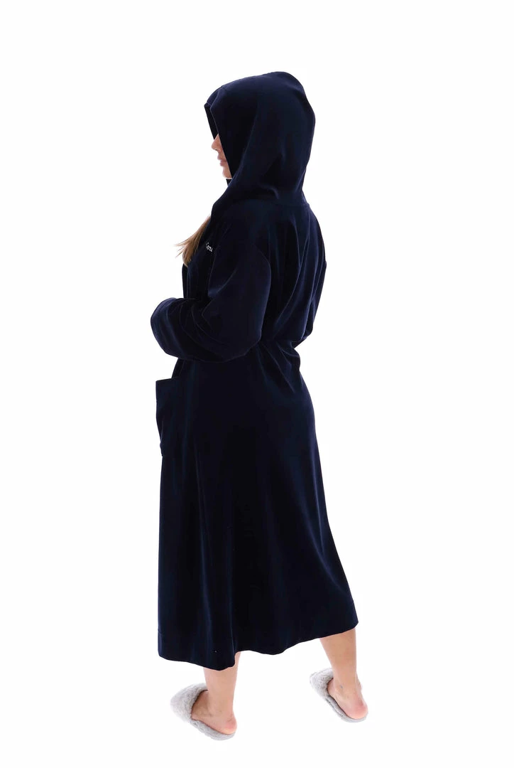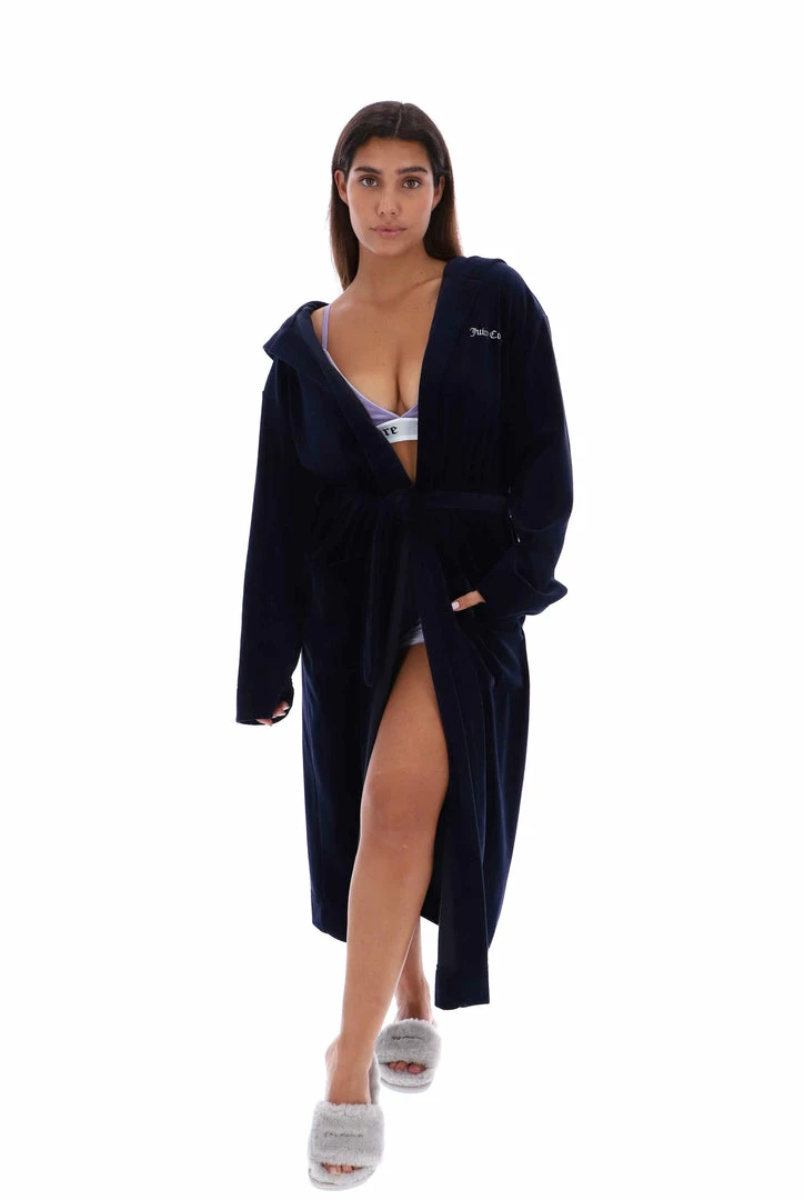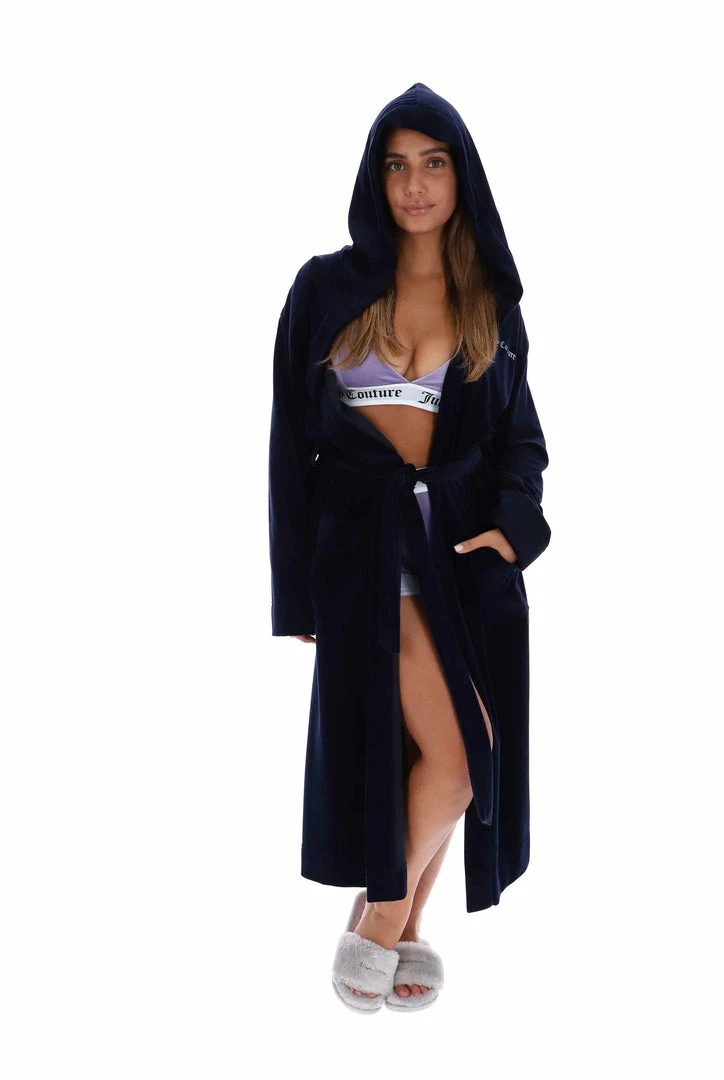 Timeless robe in night sky cotton. A loungewear staple, this robe features two front patch pockets and is branded with an embroidered Juicy Couture logo at chest.