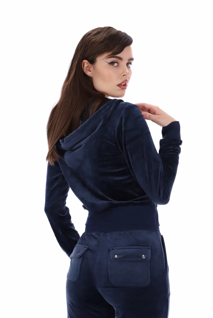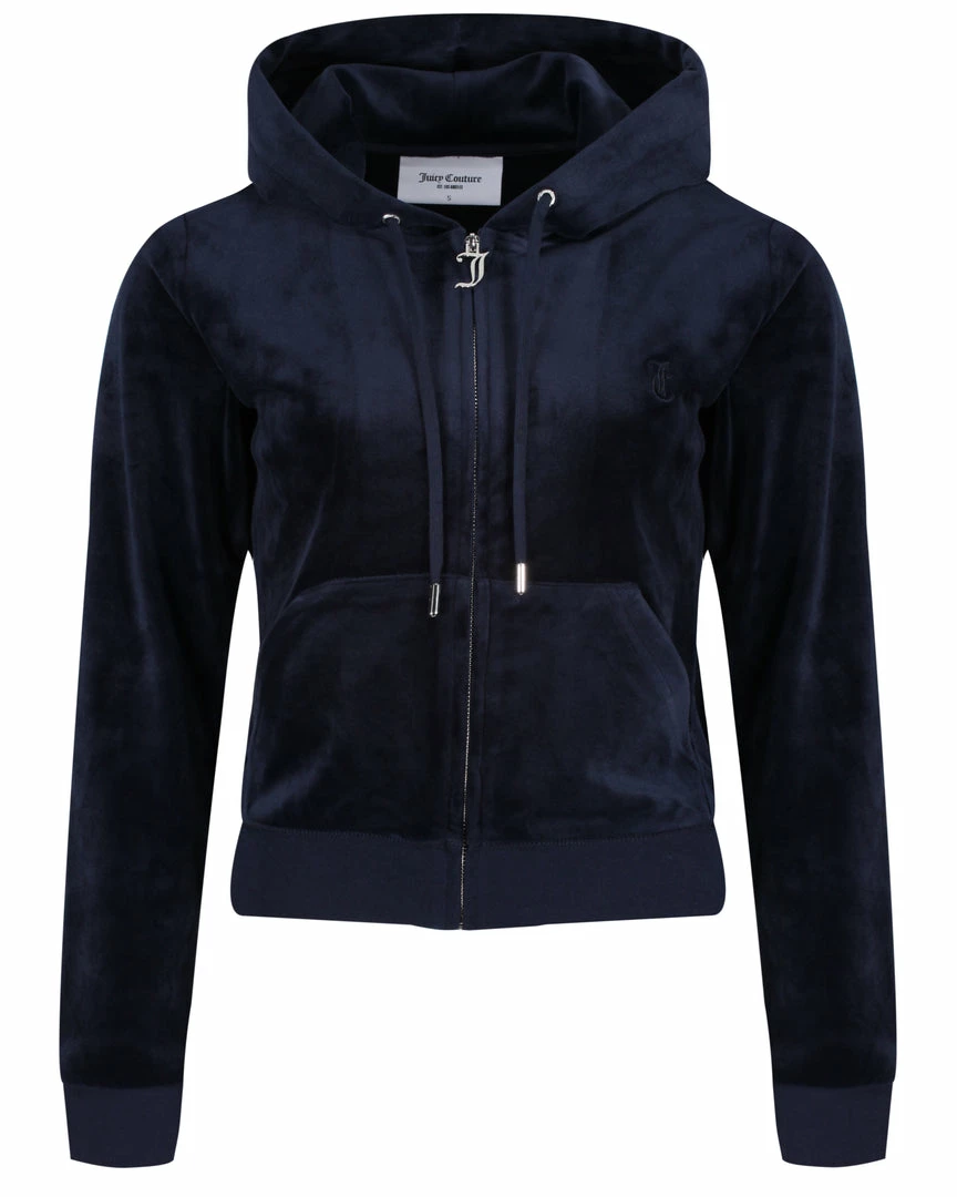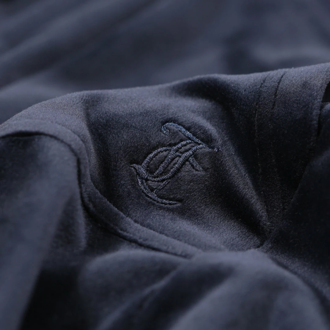 Our legendary Black Label zip through staple hoodie in night sky classic velour. Slim fit, with kangaroo pockets and a self- fabric lined hood, this core hoodie features a statement gothic J zip pull and is branded with a tonal embroidered JC logo at the chest.