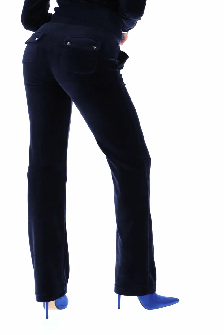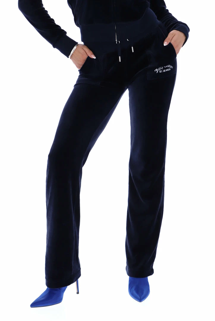 Mid-rise tracksuit bottoms in night sky recycled cotton rich velour. Offering an iconic JC tracksuit in a premium mindful design, fully sustainable from production to fabrication, hardware and trims. Straight leg fit with adjustable drawstring ribbed waist and front feature pockets. These signature joggers feature back popper fastening pockets, branded silver hardware and are finished with a tonal embroidered JC logo at hip. Pair with the matching zip up hoodie to complete this conscious tracksuit look.