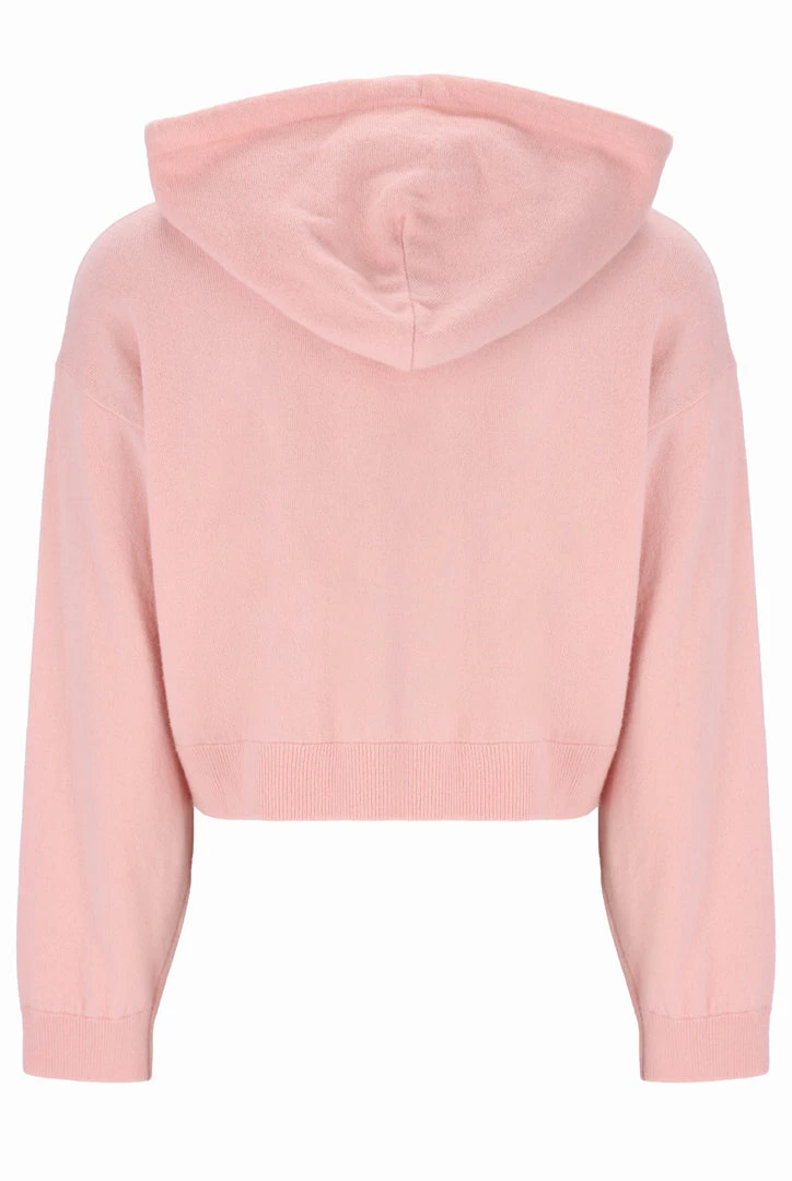 PALE PINK CASHMERE BLEND KNITTED HOODIE
