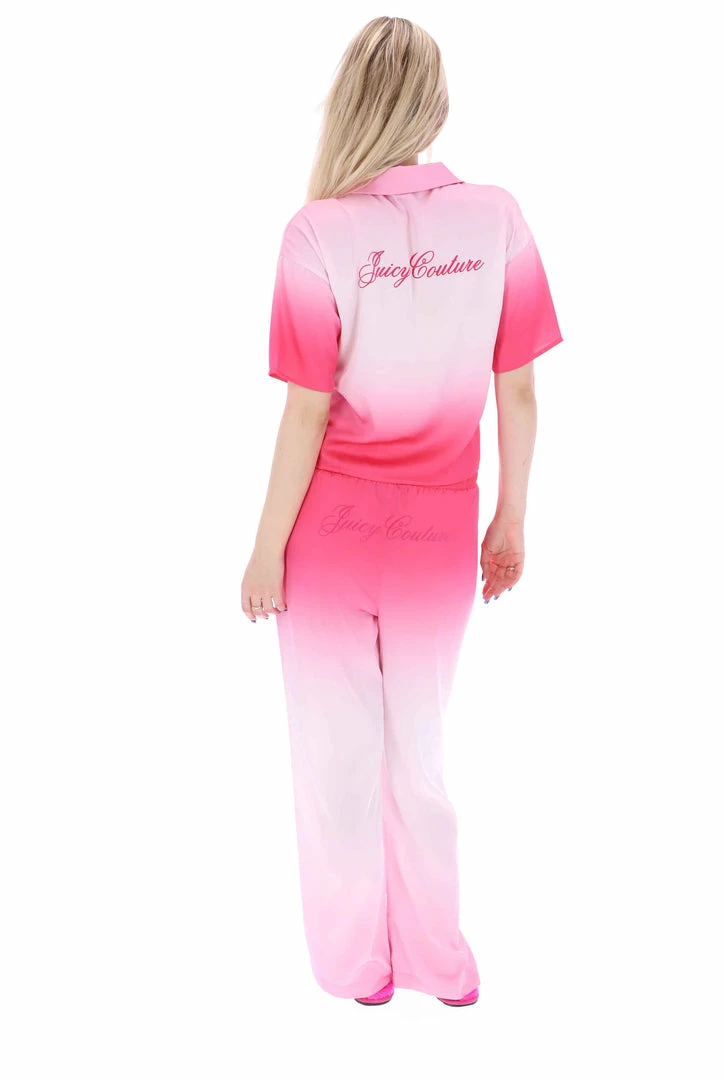 Ombre satin pyjama shirt with script Juicy Couture embroidery. This button up, relaxed fit shirt features contrast Juicy Couture embroidery on the back and a JC embroidered logo on a chest patch pocket. Pair with the matching trousers for a full luxurious nightwear look.