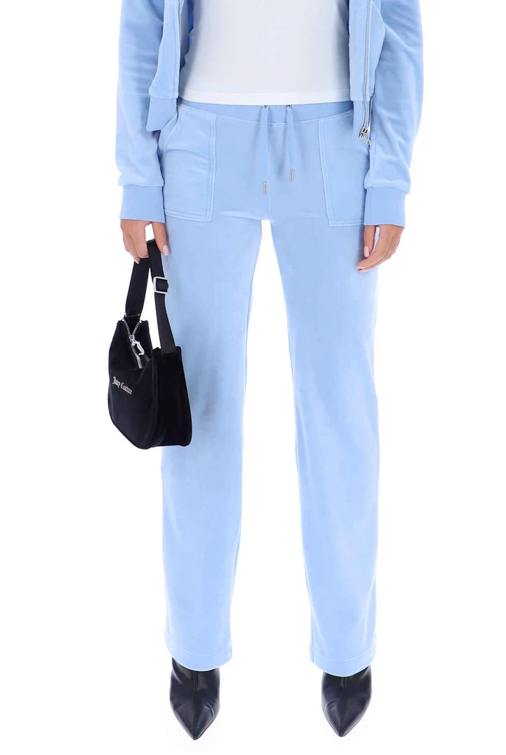 Mid-rise plain tracksuit bottoms in powder blue classic velour. Flared leg fit, with adjustable drawstring ribbed waist and front feature patch pockets. These Black Label joggers feature back popper fastening pockets, silver branded hardware and are finished with a tonal embroidered JC logo at the hip. Pair with the Robertson hoodie for the full iconic tracksuit staple.