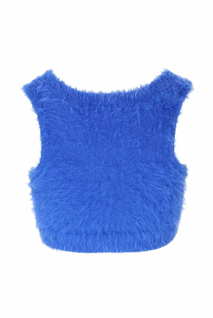 PRINCESS BLUE FLUFFY KNIT CROP TOP
