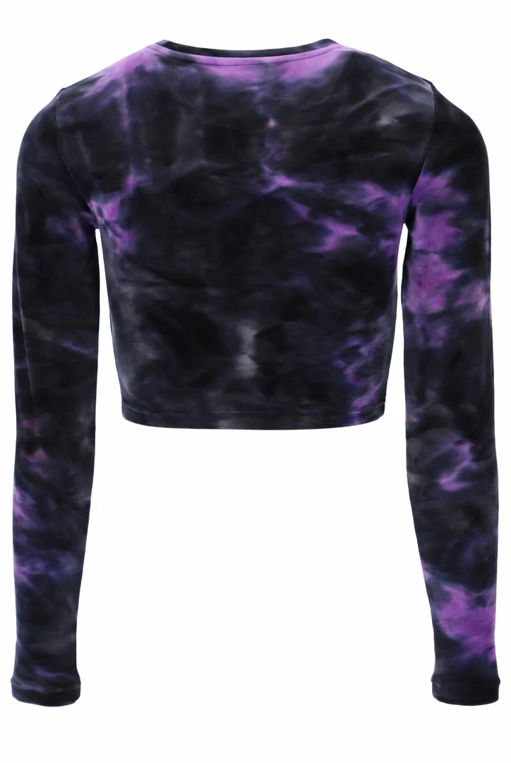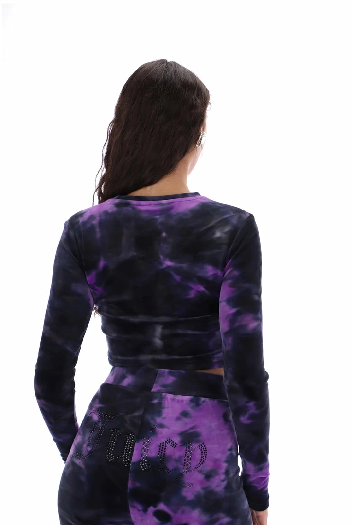 PURPLE TIE DYE LONG SLEEVE VELOUR CROP TOP