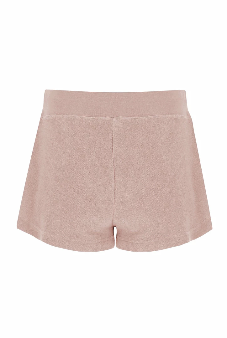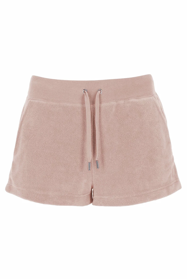 Mid-rise plain shorts in shadow grey terry towelling. A short flirty fit, with adjustable drawstring ribbed waist and front angled pockets. These inconic core track shorts are branded with silver hardware and a tonal embroidered JC logo at the hip.