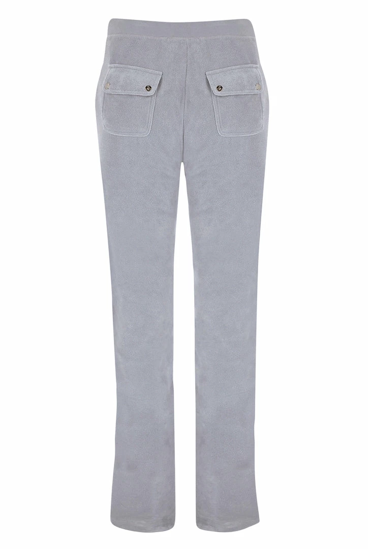 Mid-rise plain tracksuit bottoms in silver marl terry towelling. Flared leg fit, with adjustable drawstring ribbed waist and front feature patch pockets. These core joggers feature back popper fastening pockets, silver branded hardware and are finished with a tonal embroidered JC logo at the hip.