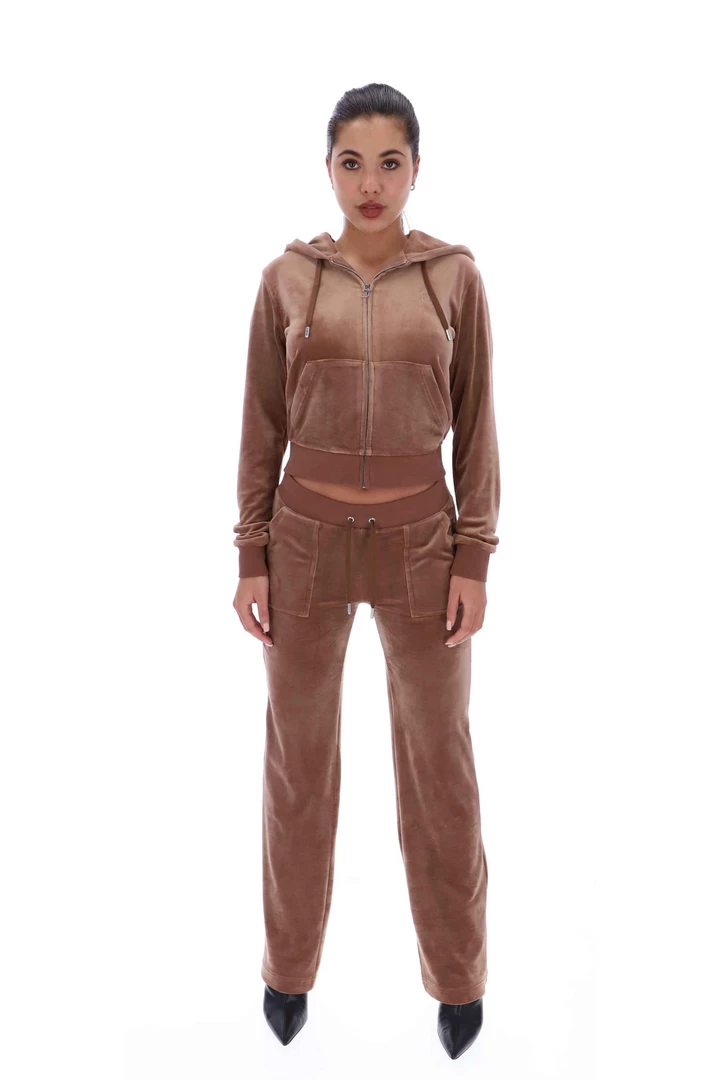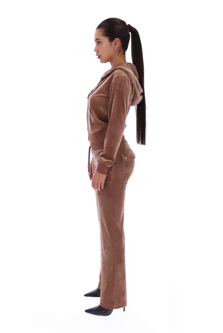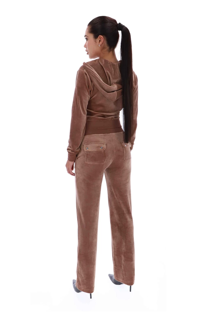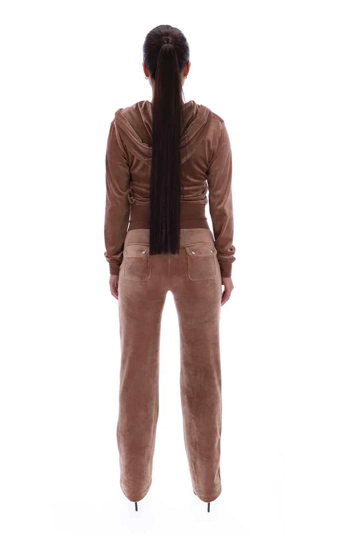 Mid-rise plain tracksuit bottoms in acorn classic velour. Flared leg fit, with adjustable drawstring ribbed waist and front feature patch pockets. These Black Label joggers feature back popper fastening pockets, silver branded hardware and are finished with a tonal embroidered JC logo at the hip. Pair with the Robertson hoodie for the full iconic tracksuit staple.
