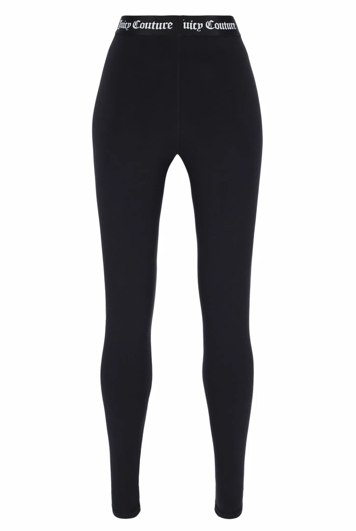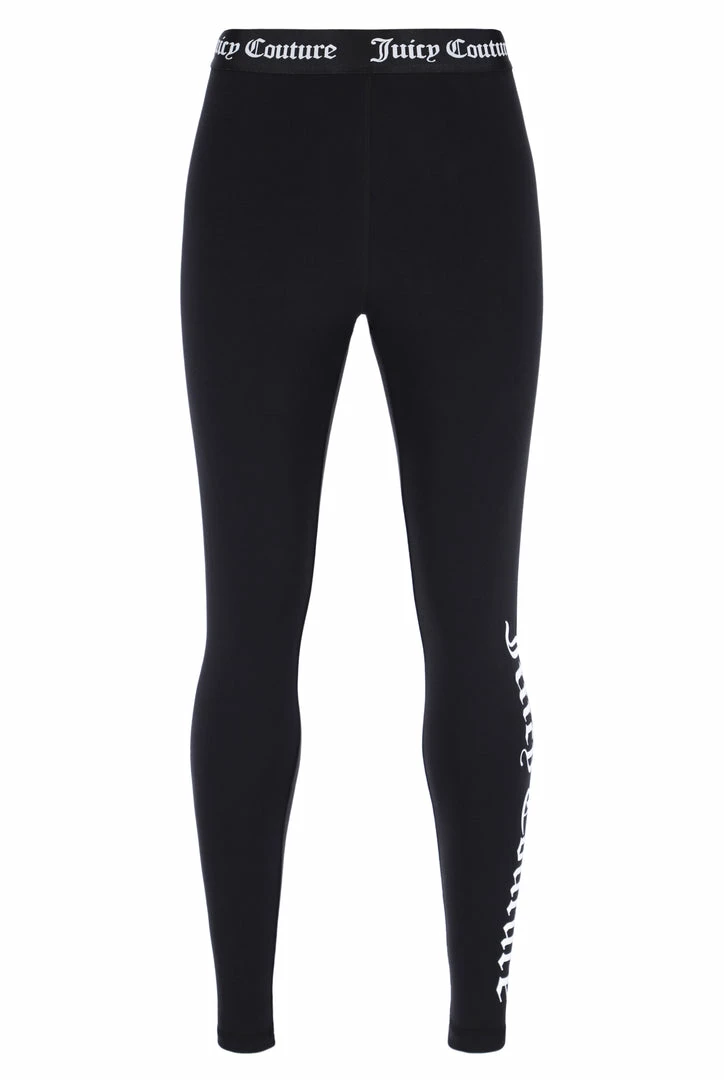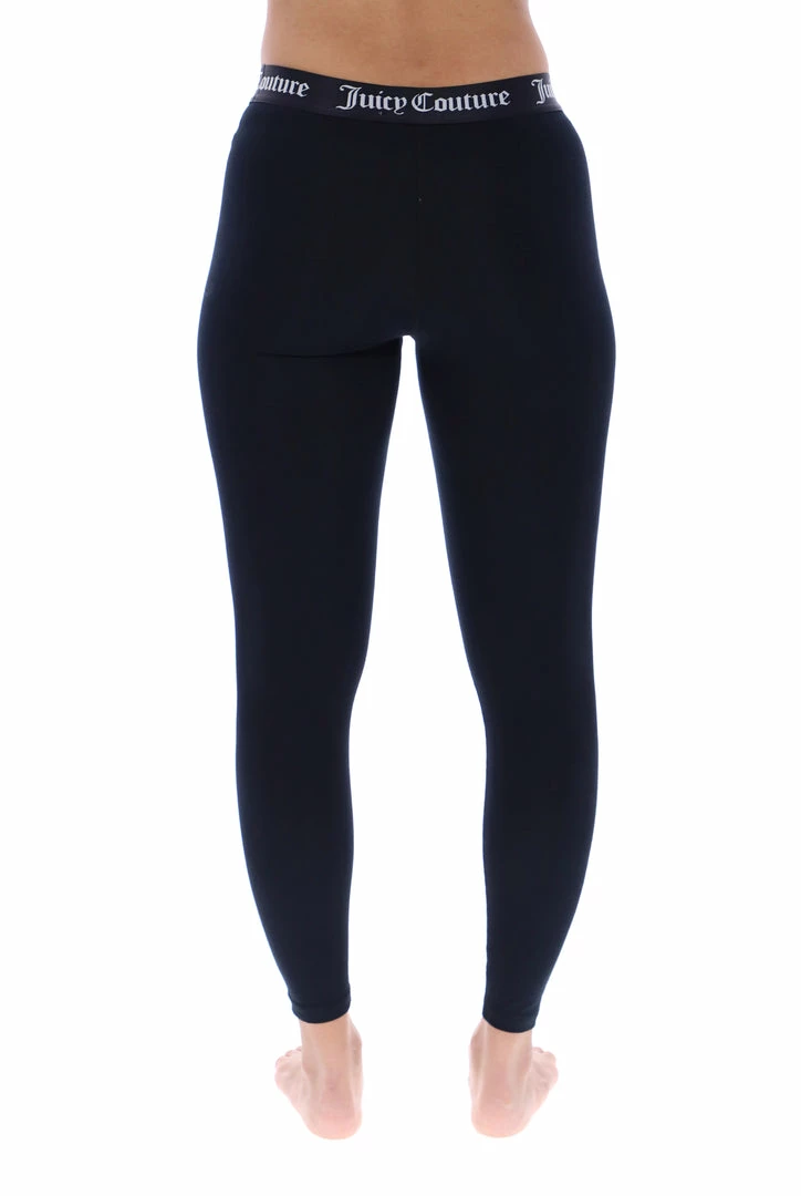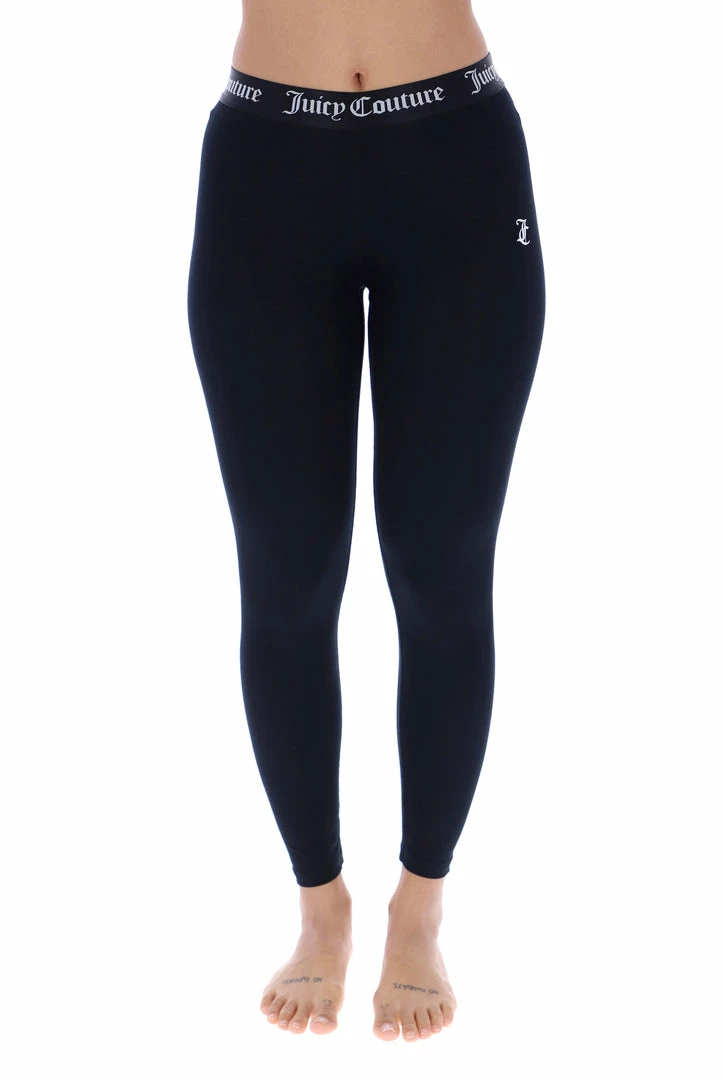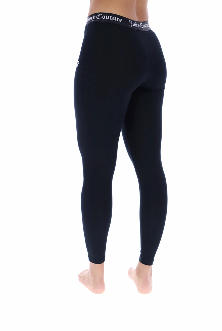 Legging in black single jersey. These full length leggings feature a branded soft jacquard elastic waistband and injection mould ‘Juicy Couture’ logo down left leg.