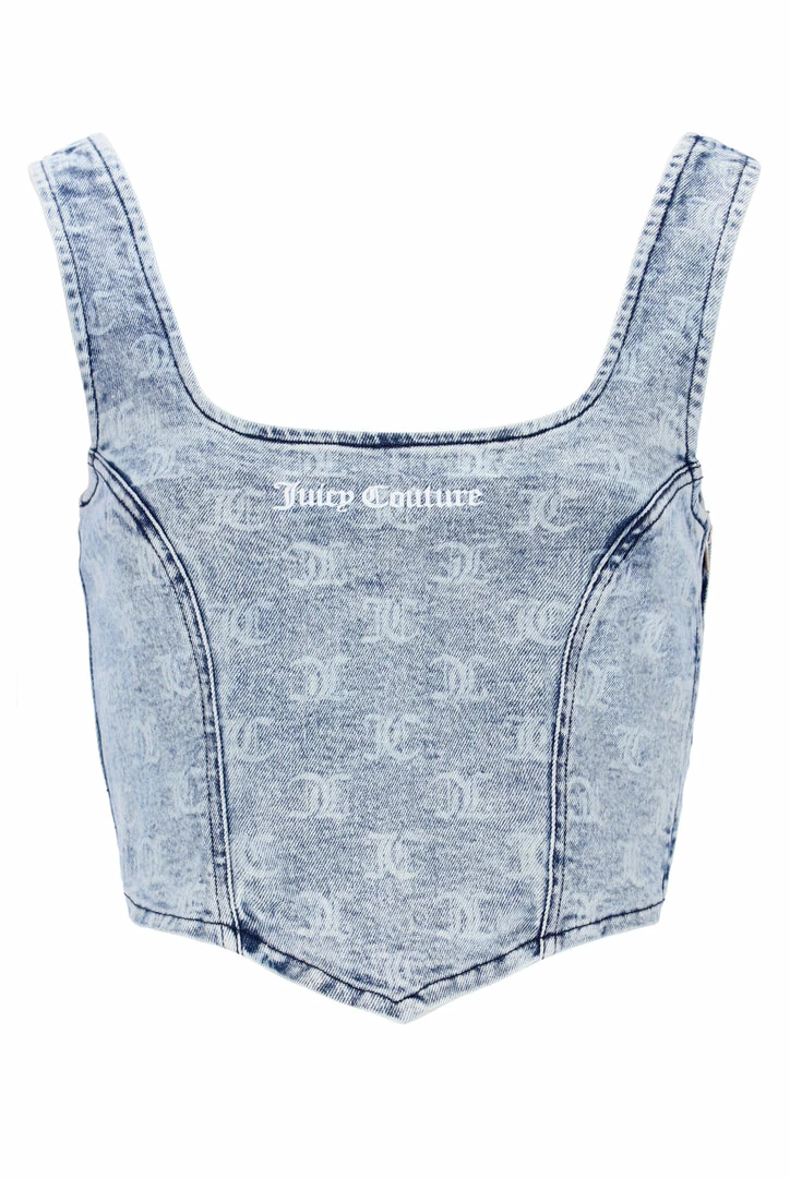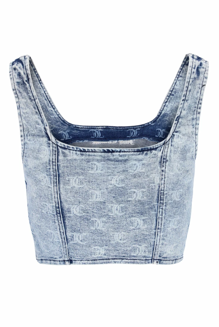 INDIGO MONOGRAM ACID WASH DENIM CORSET