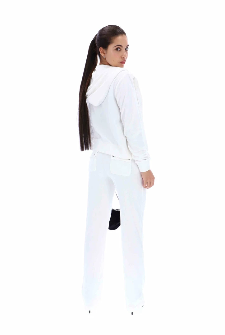 Mid-rise plain tracksuit bottoms in white terry towelling. Flared leg fit, with adjustable drawstring ribbed waist and front feature patch pockets. These core joggers feature back popper fastening pockets, silver branded hardware and are finished with a tonal embroidered JC logo at the hip. TERRY TOWELLING- A breathable cotton fabrication to update your staple tracksuit for the summer months. Pair with the Robertson towel hoodie for a poolside track fit.