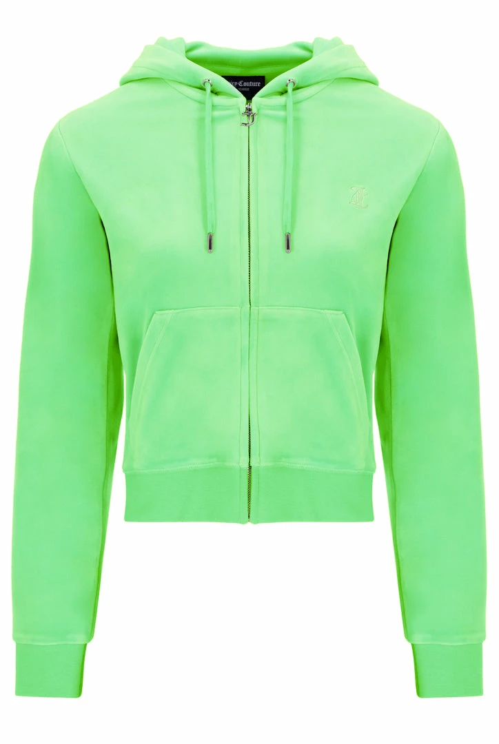 Zip through hoodie in summer green classic velour. Slim fit, with kangaroo pockets and a self-fabric lined hood, this core hoodie features a statement gothic J zip pull and is branded with a tonal embroidered JC logo at the chest.