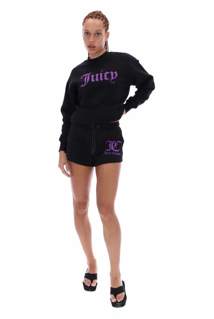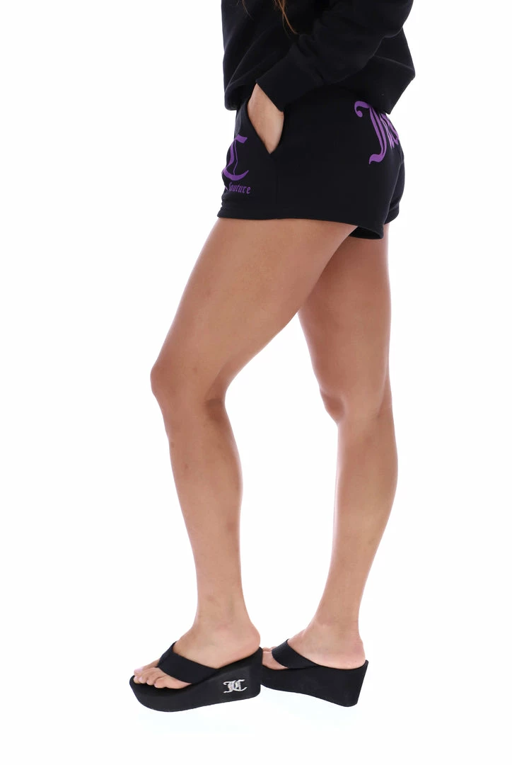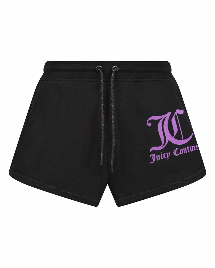 Mid-rise track shorts in black soft brushback fleece. These shorts feature a smocked waistband and are branded with a contrast JC flocked print on left leg. Pair with the matching sweat for a casual sports look.